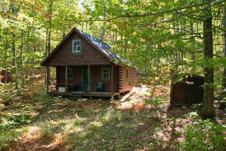 There in the secluded Canton, Maine woods, a gorgeous off grid log cabin stands out… Inside a 400-Sq-Ft Mountain Cabin With Rustic Charm on 73 Acres
