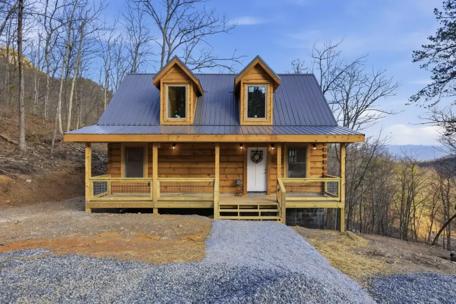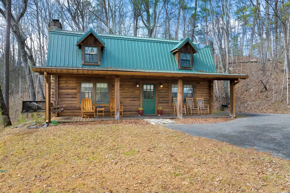 The rustic charm of this beautiful log cabin half-hidden in the 2.5-acre forest of Sevierville,…