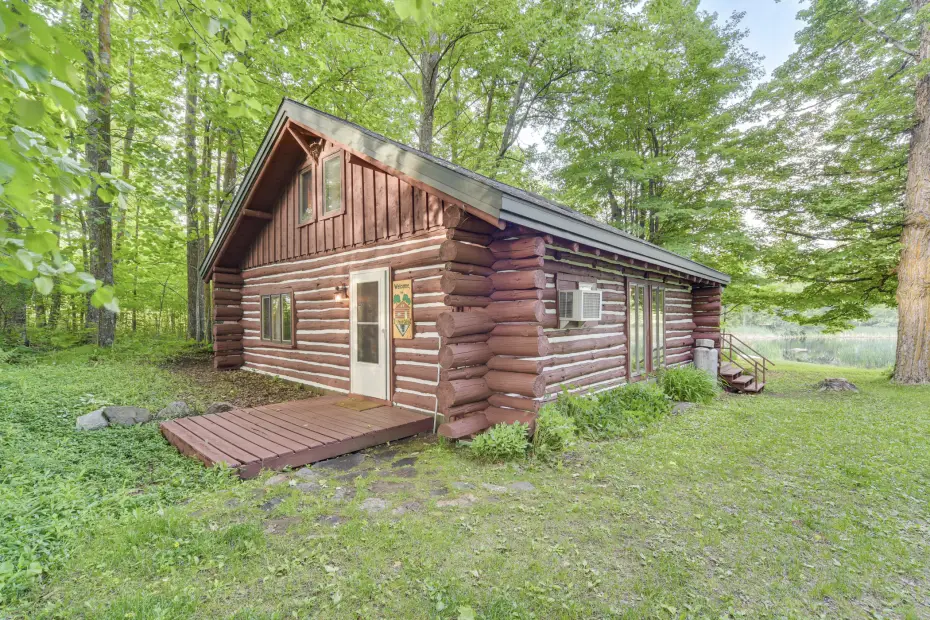 Explore This Authentic Log Cabin with a Loft Bedroom and Private Pond