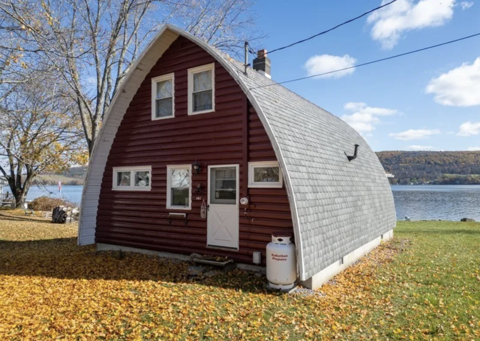 The Quonset hut home is made more lovable by the way it integrates with the Richfield Springs neighborhood, the 0.57-acre lot standing as a perfect vantage point for privacy while also providing space for open-air activities, the home being kept dry by the crawl space and the parking off the street handy for visitors.