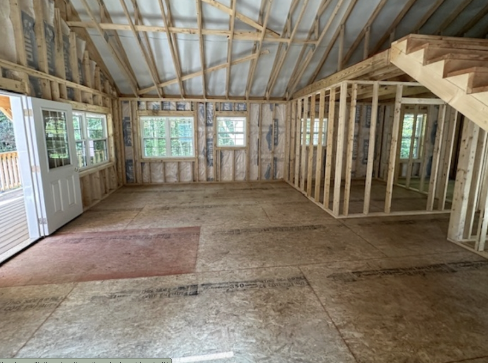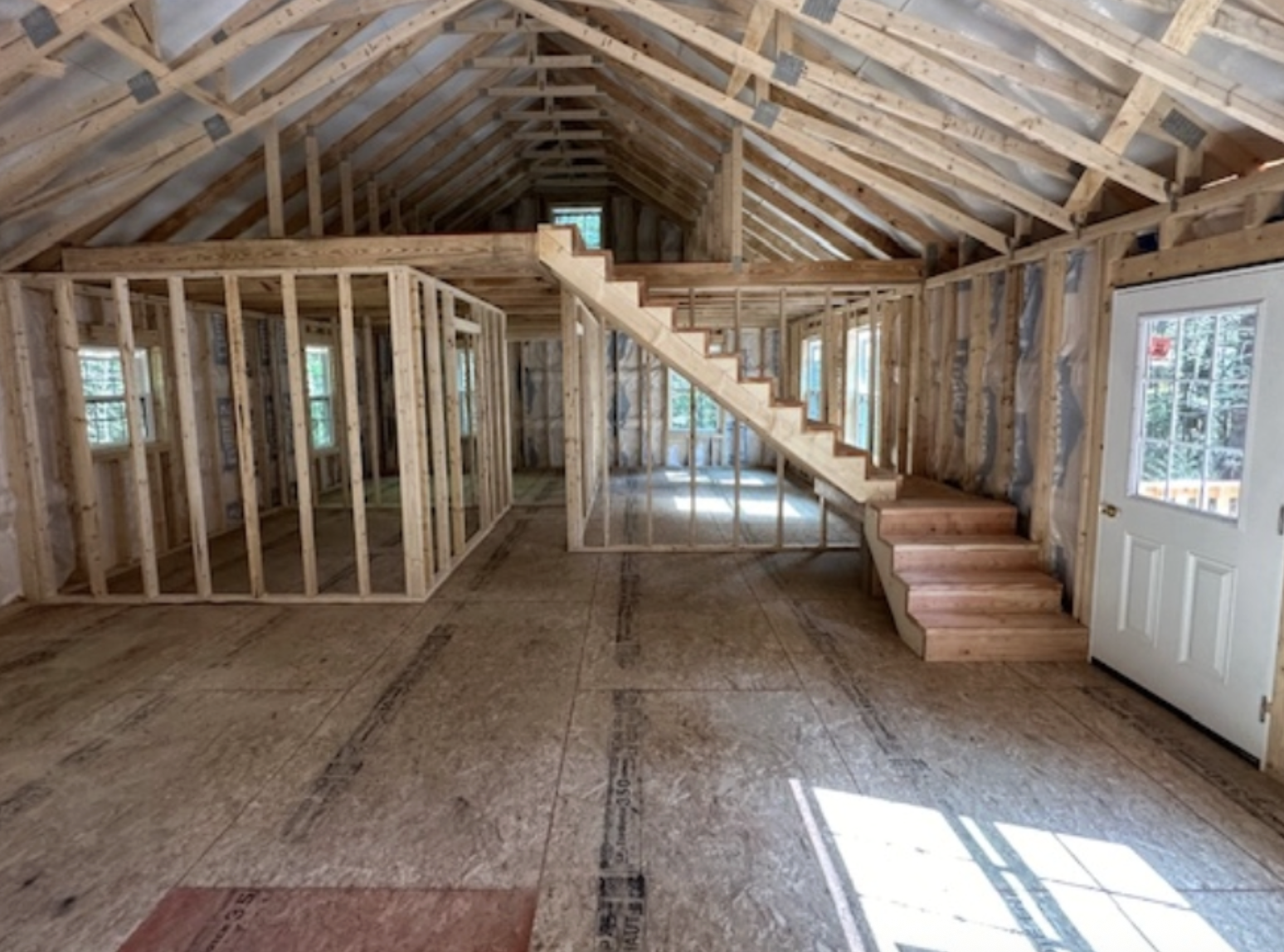 Inside, the 1,050-square-foot space presents a blank slate for creativity, with a planned layout that includes two bedrooms, one bathroom, and a sleeping loft. This configuration offers ample room for a small family or weekend guests, with the loft providing extra sleeping or storage options. Since the interior should be finished after purchase, buyers have the freedom to select flooring, wall finishes, and fixtures, ensuring the space reflects their style. This hands-on approach is ideal for those who relish the process of building a home, turning the shell into a functional and personalized living area tailored to their needs.