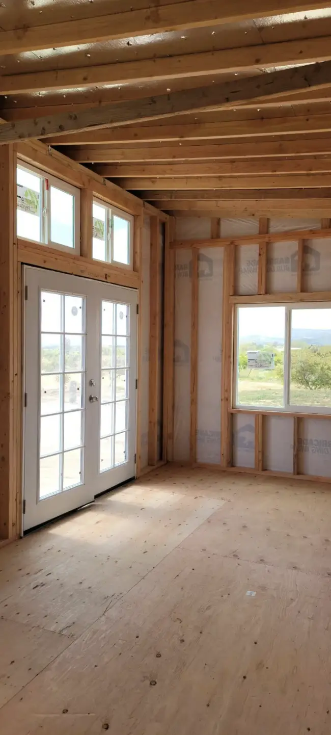 The cabin has an unfinished interior. This means that the new owners will be able to design the interior in the way they prefer, using this as an opportunity to express their individuality. The layout is very open, so there’s a lot of space that can be manipulated to come up with different floorplan designs. This also means that the owners can decide on the interior elements such as flooring, wall finishes, cabinetry, and fixtures. Not having the interior finished leaves room for all the excitement in the process of making the cabin a home instead of starting at the beginning and is also a good time-saver despite creativity being required for the finishing touches.