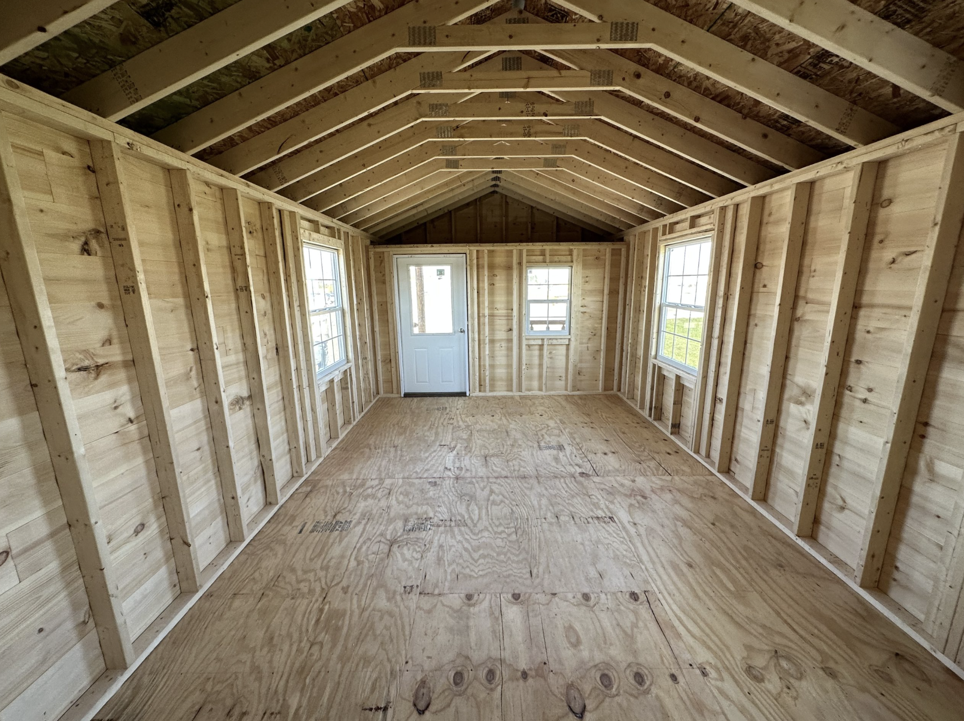 This cabin is a shell with the unfinished interior. The interior finishing after delivery is the responsibility of the individual, according to their preference, budget, and use of the cabin. This is a great feature that allows the owners to come up with the floor plan, pick the materials, and, in general, create the space that reflects their desires, be it living quarters, a home office, guest quarters, or an arts studio.
