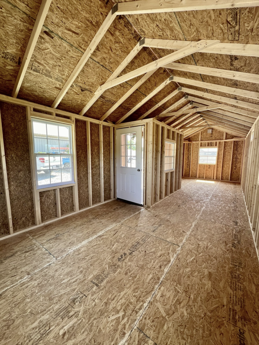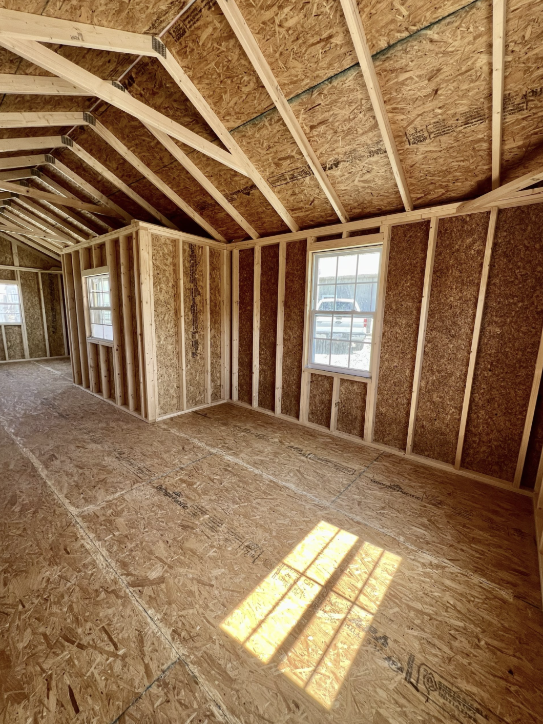 | Key Highlights | Tall walls, double dormer, center porch, unfinished interior ready for customization |