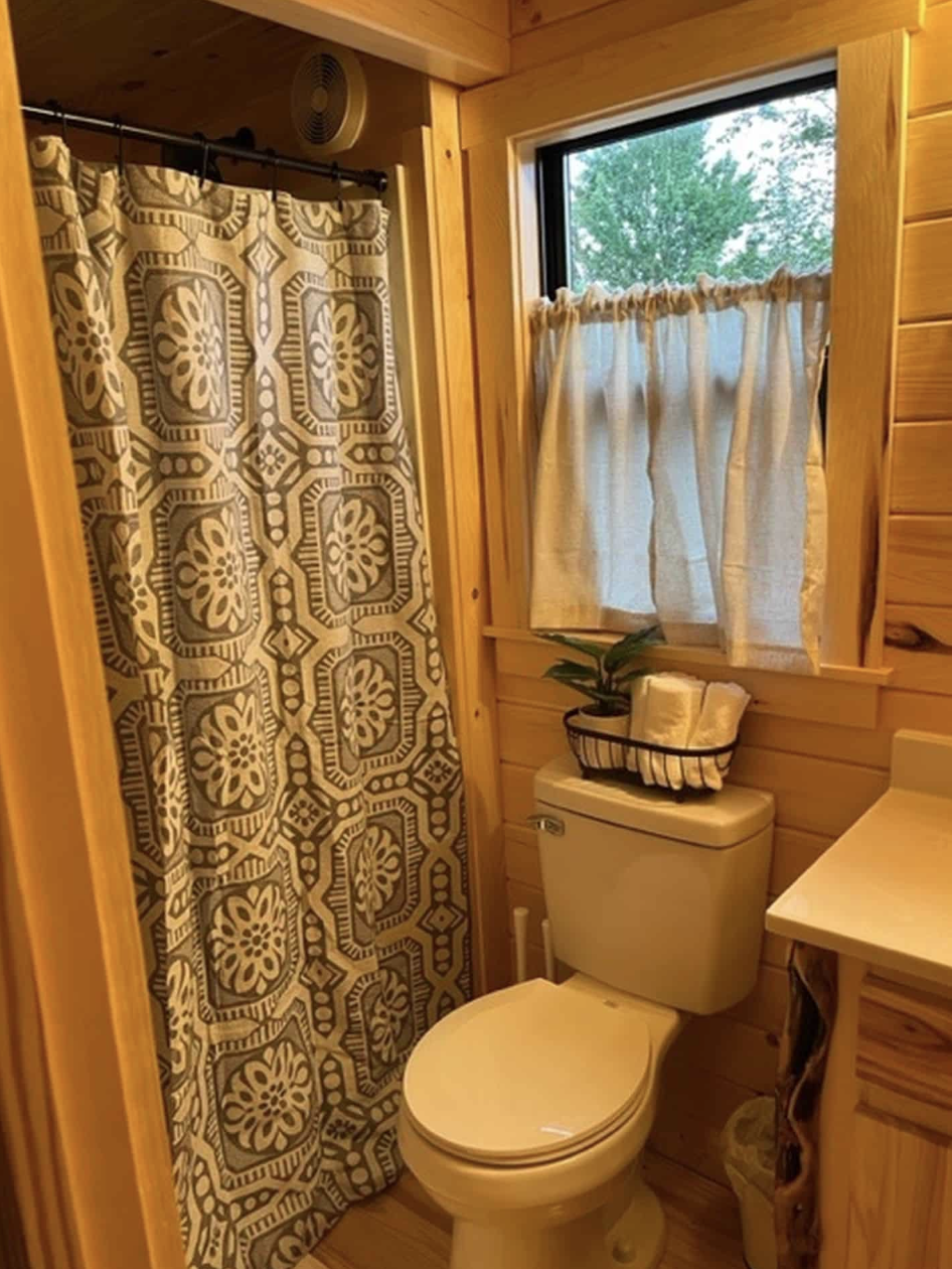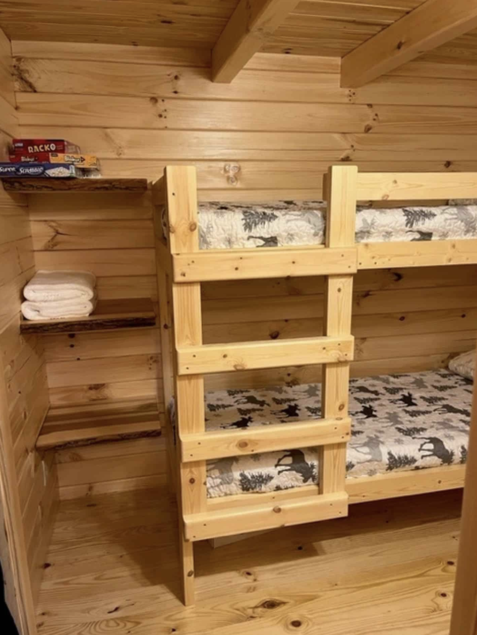 This park model cabin’s interior is optimized in that way to be as much usable as it can, so the other bedroom is with a bunk bed, which optimizes the space and ideal for children or to accomodate guests.