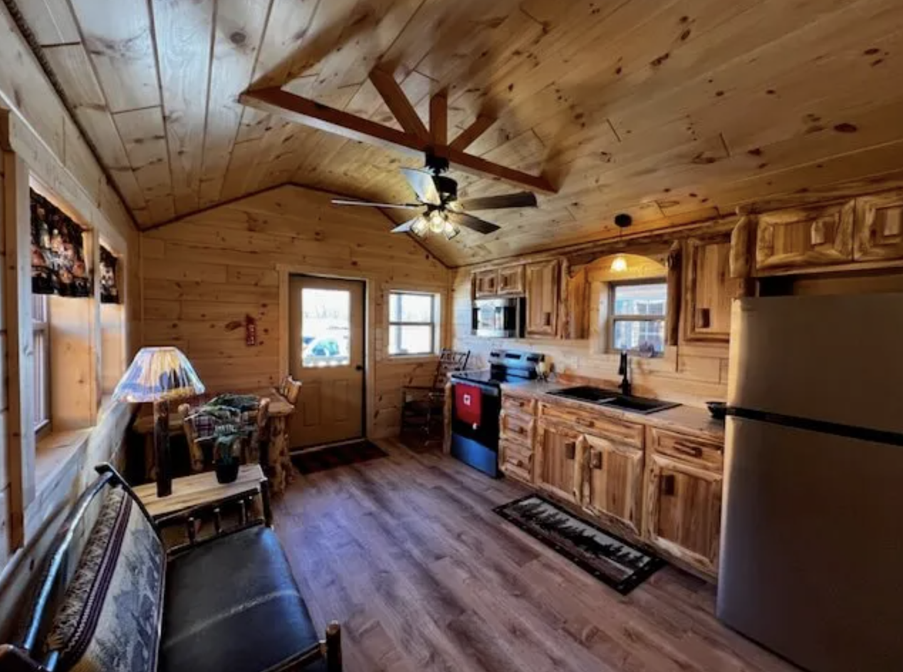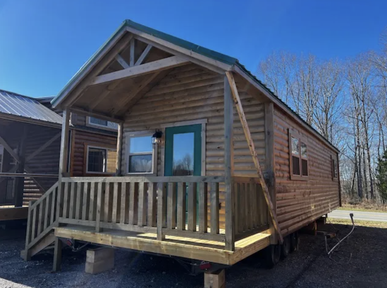 The park model cabin is listed on Hilltop Structures. To learn more about customizations or any other information related to the listing, please visit: Hilltop Structures – 12×38 Country T Cabin Park Model