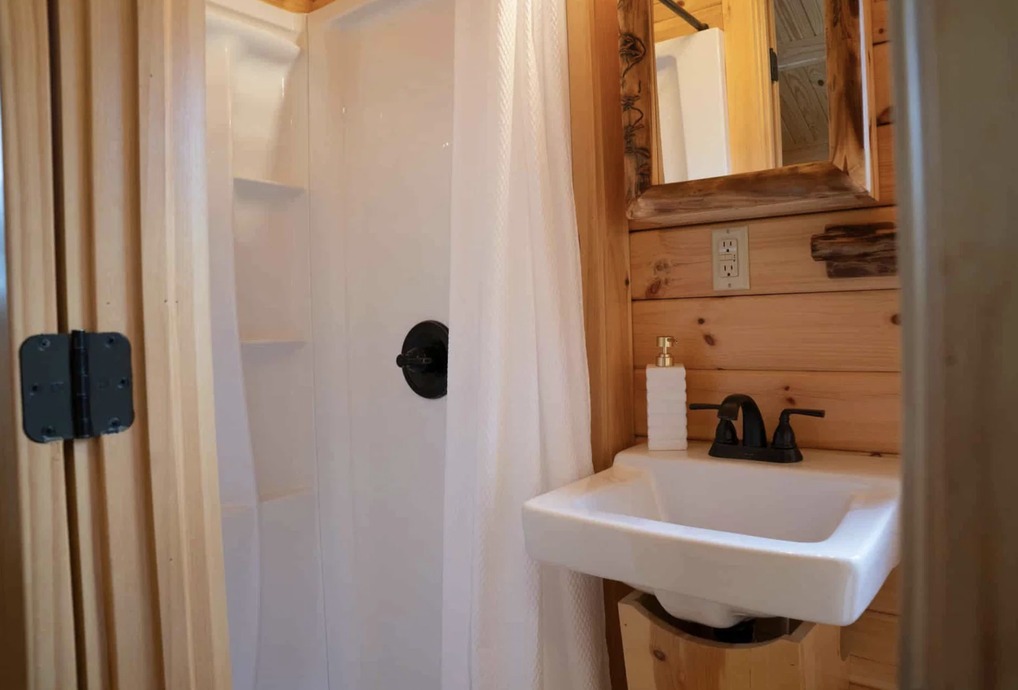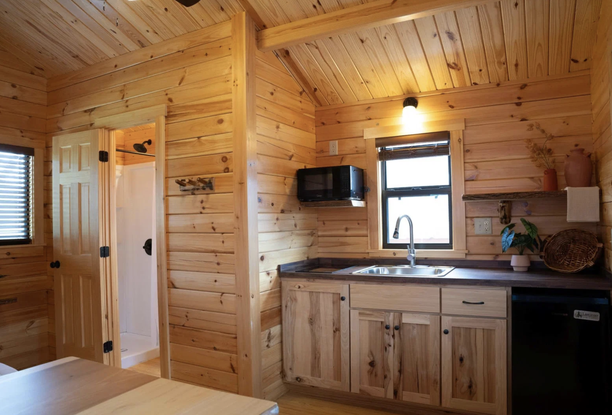| Key Features | Bath & kitchenette included, galvanized steel roof, window blinds, 32” TV, rustic hardware |