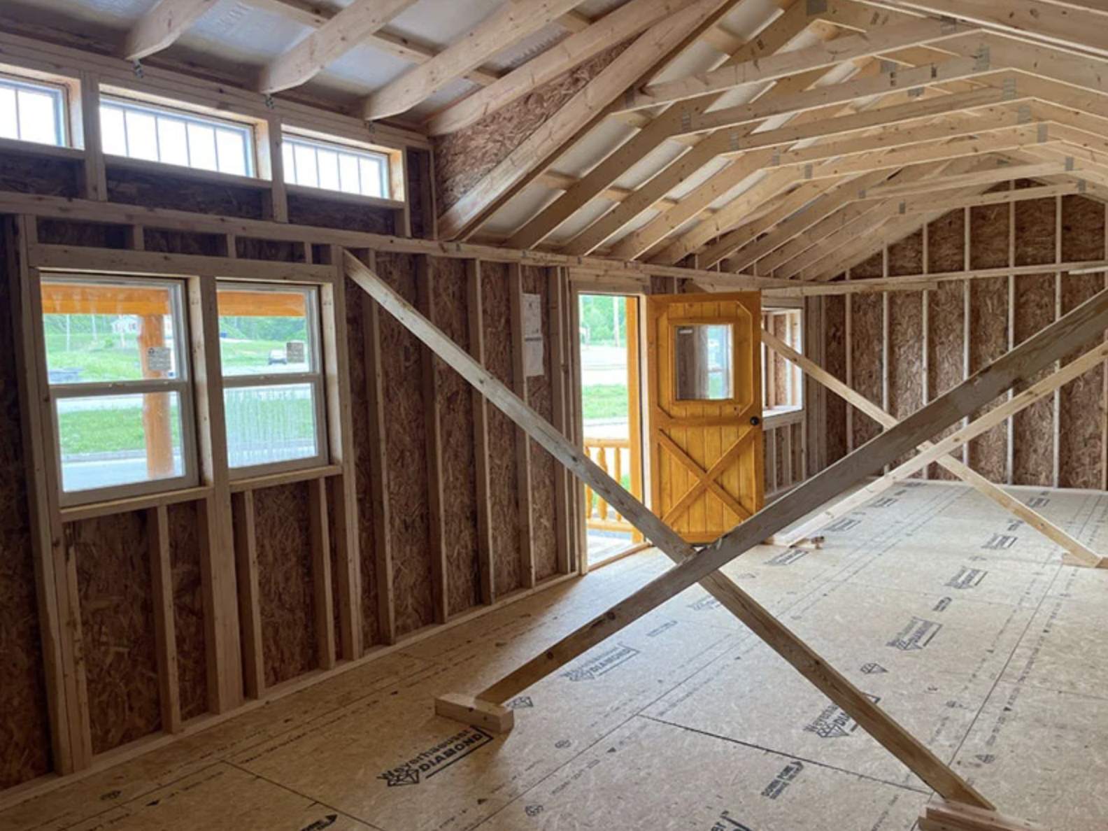 It comes as a exterior with its interior unfinished. The interior is still to be finished and can be done according to one’s taste, budget, and specific needs after the cabin is delivered. Having the interior to be done one’s own way means the owner can lay out the plan, get the materials, and build the space that meets his / her needs from a full-time home, a weekend hideaway, a home office, or a rental property. Large interior space provides excellent basis for personalization while keeping the cabin’s compact footprint.