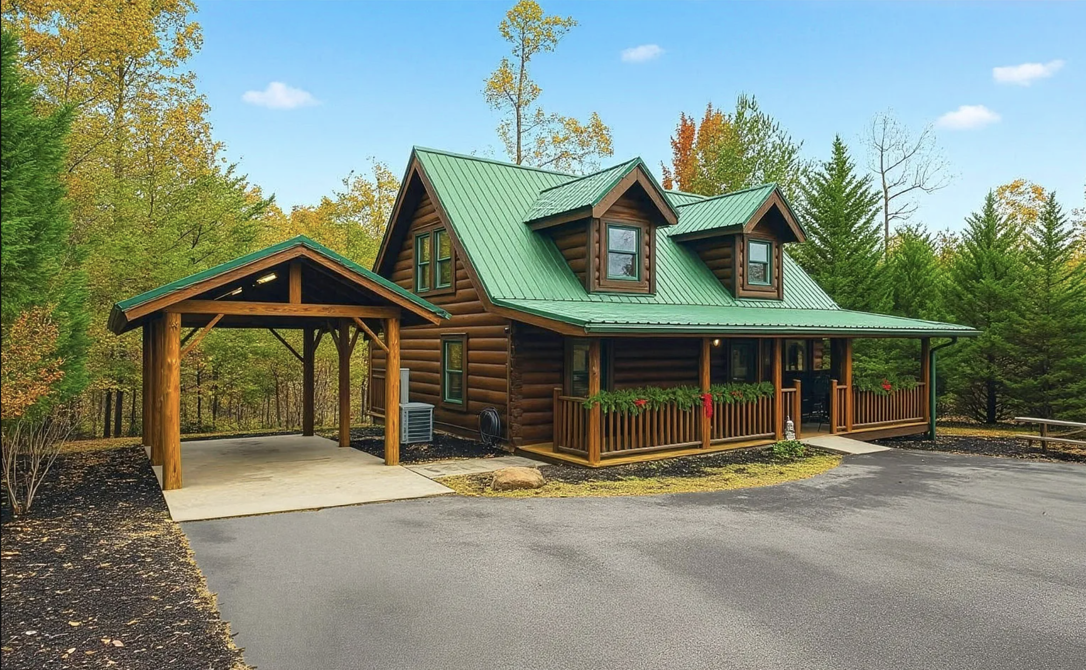 In order to get rid of the mountains frequent rains and snows the roof is steeply angled and covered with long-lasting shingles that will get old but still look good. On the other hand, theside lighted carport is there as a neat little touch of practicality with the beam giving off a soft light on the driveway when you return from a hiking day at the trail. The 0.27-acre sloped lot is very much in tune with the surroundings and seems like a private getaway with the cabin being just right for catching the wind from the ridge and the woods serving as a natural screen that provides not only privacy but also that indescribable feeling of being one with the vastness of the Smoky Mountains. The exterior is a great deal accomplished through the logs’ patina and the porch serving as a bridge to the inner peacefulness; thus, the cabin is the very embodiment of Tennessee’s high country beauty.