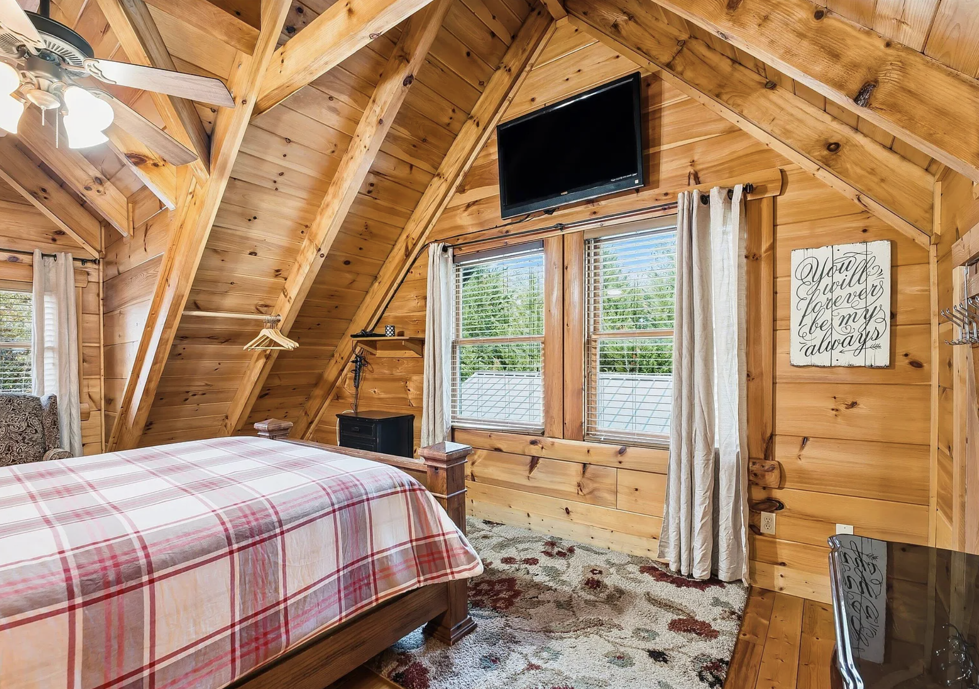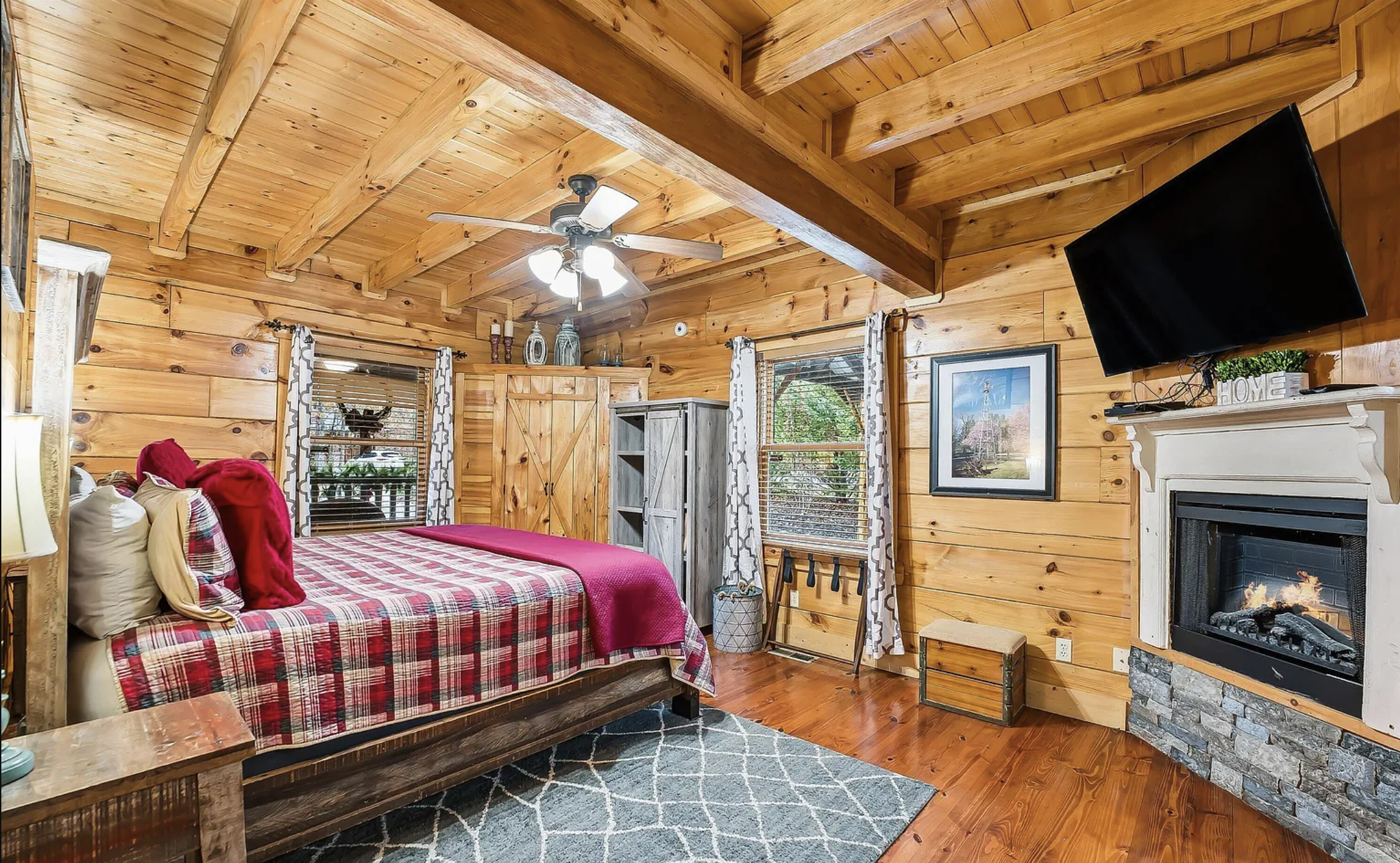 Both the bedrooms are made wonderful for sleeping and coming back to oneself. They are like separate sanctuaries of the cabin inside its warm fold. The primary bedroom that is on the main level is like a quiet retreat featuring a king bed loaded up with mountain-style quilts, a walk-in wardrobe for clothes and gear, and a bathroom that is en-suite with a jetted tub, separate shower and tiled floors that are always cool.