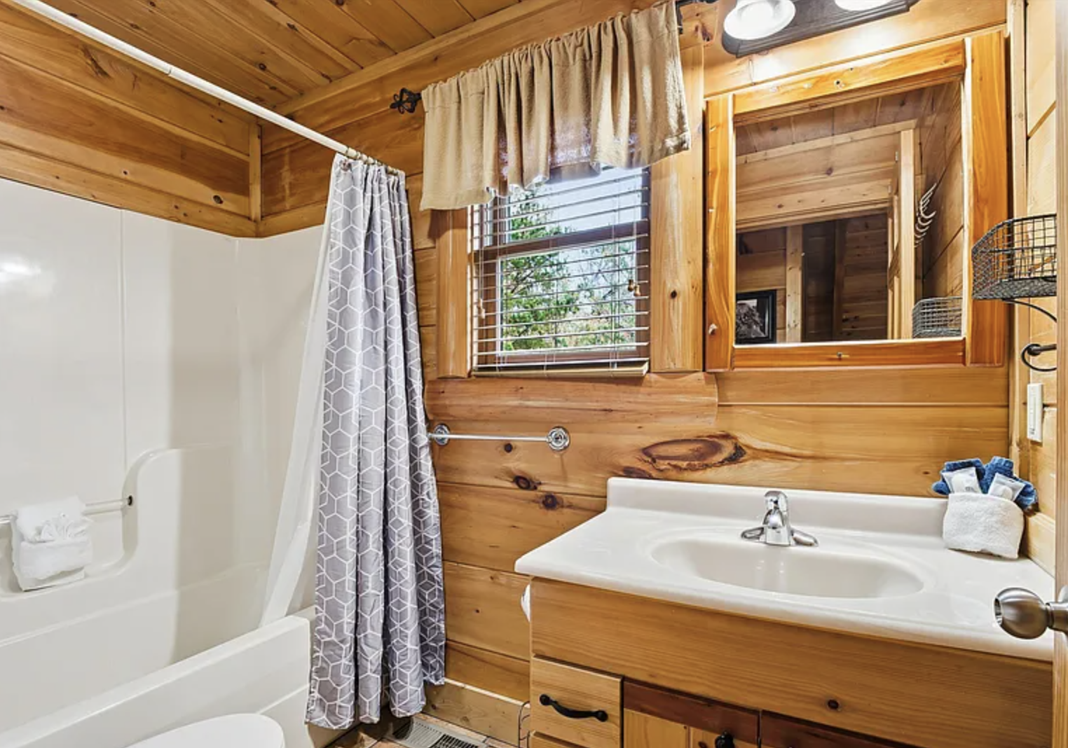The cabin accomplished this through simple means: logs’ patina, porch being a bridge to the calm inside, a cottage that is a silent memorial to the beauty of Tennessee’s high country. Simple touches of the cabin such as the newly installed water heater for endless steam, the newly created linen closet filled with fluffy towels, and the new washer/dryer for keeping things fresh make the stay feel like one of high class where the beauty lies in the balance of rustic soul and modern ease, the open recreation area with its pool table a place for games and the lighted carport a practical hub for arriving home.
