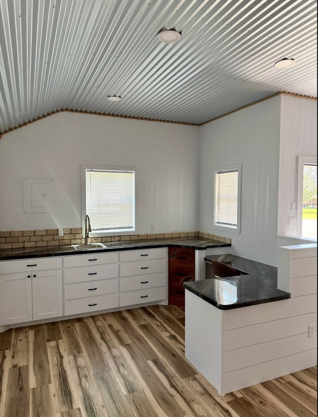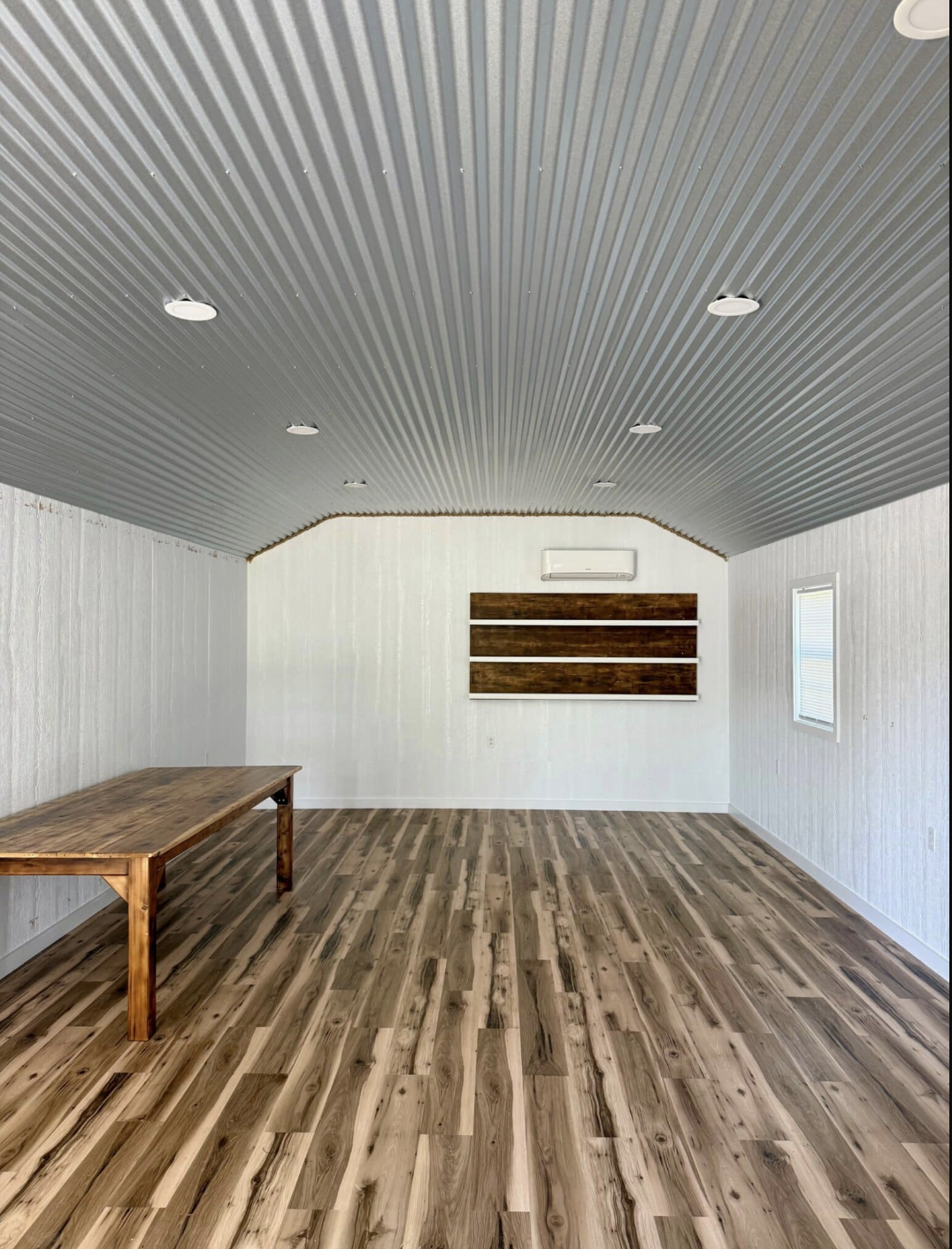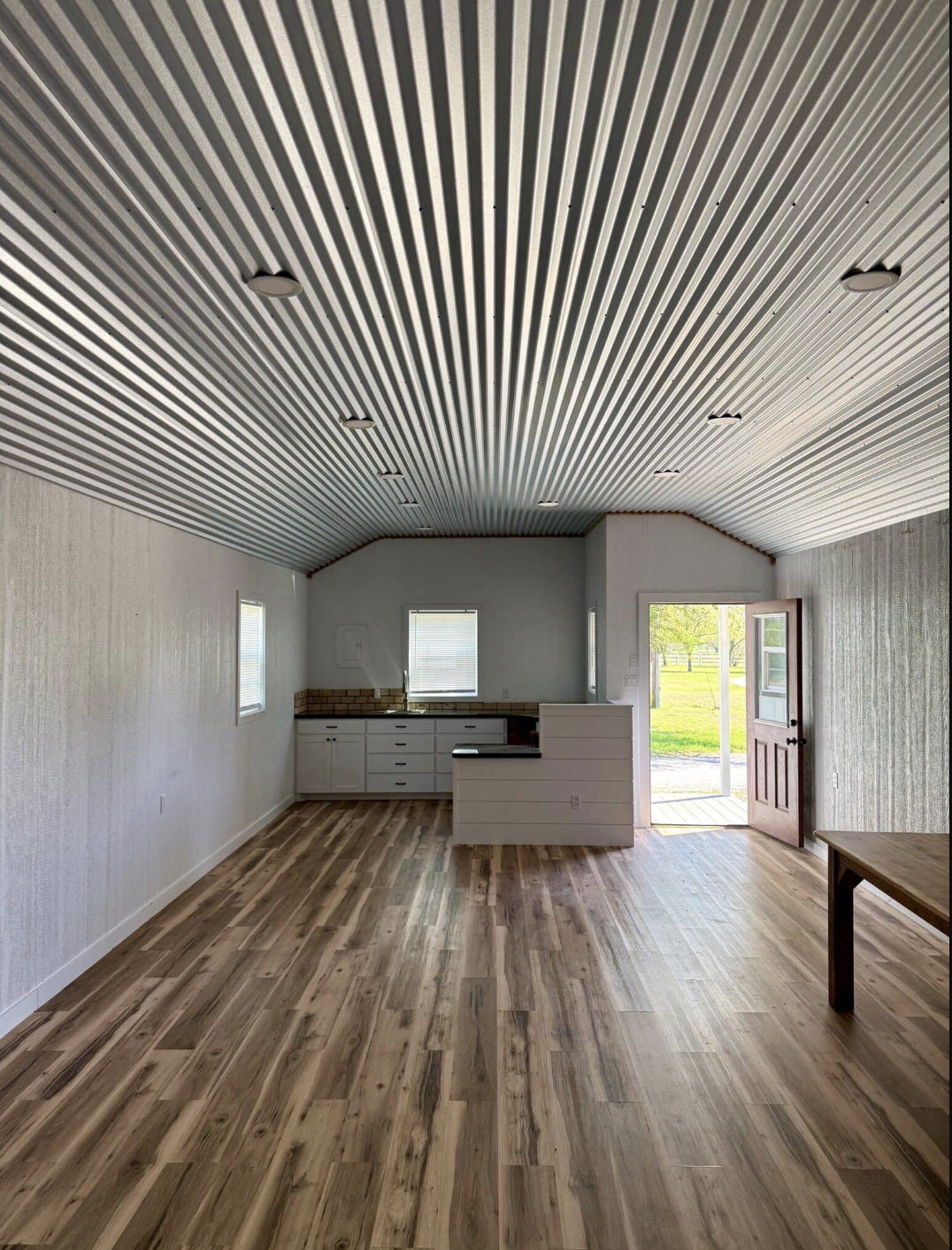 | Exterior | Barn White with Black Trim, Black Metal Roof |