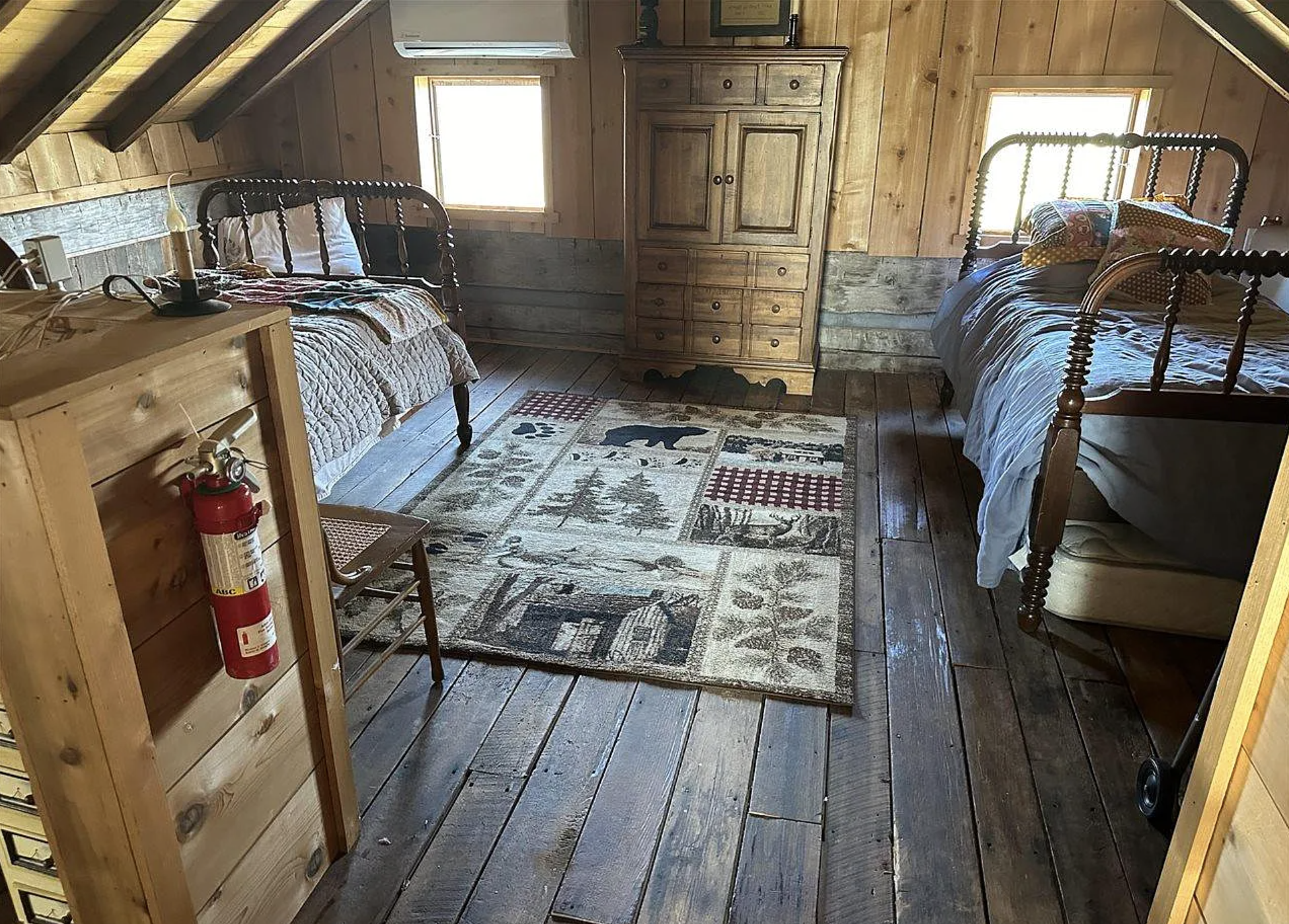 There are three bedrooms that provide quiet refuge. The original log part of the house contains the main living areas and two of the bedrooms, whereas the loft area on the upper level can be used for sleeping or storage. A single full bathroom is available to the home which is of simple, functional design. The warmth of the grand stone fireplace, zoned mini-splits, and gas wall units is what makes the cabin comfortable and cozy, irrespective of the season.