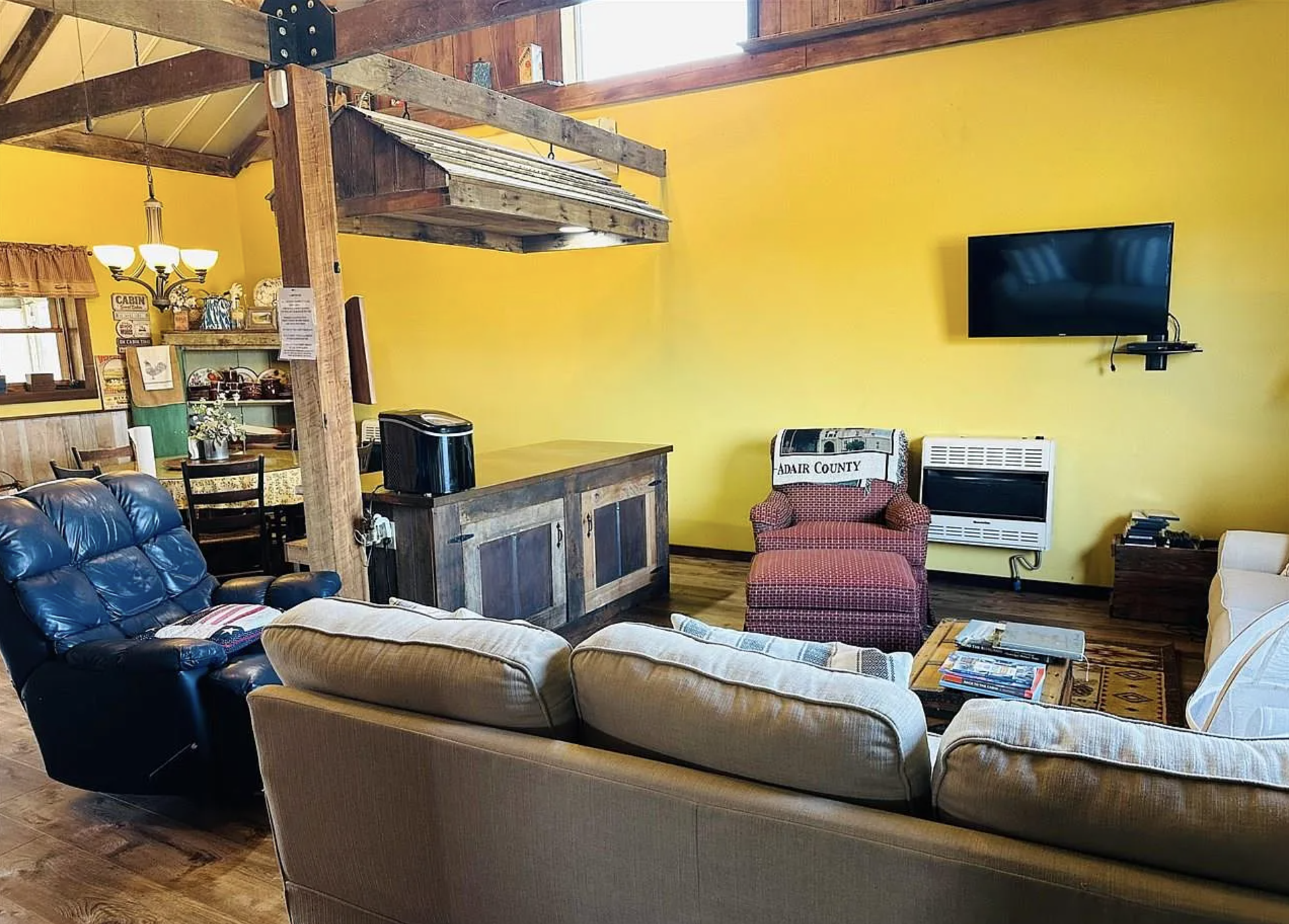The main cabin comes forward to you with the inviting warmth of the logs that were cut and shaped by hand and have witnessed Kentucky’s growth from a frontier to the Bluegrass heartland. In the original section, there are the wide-plank floors that have been worn smooth by the feet of the generations, a huge stone fireplace that was the source of heat for the entire family during the cold winter seasons, and the exposed ceiling beams with the axe marks made over 150 years ago. The cabin, whose bones date back to 1870, is equipped with modern-day thoughtful additions such as a large kitchen, dining area, and a roomy gathering room which provides comfort and convenience without compromising the authenticity.