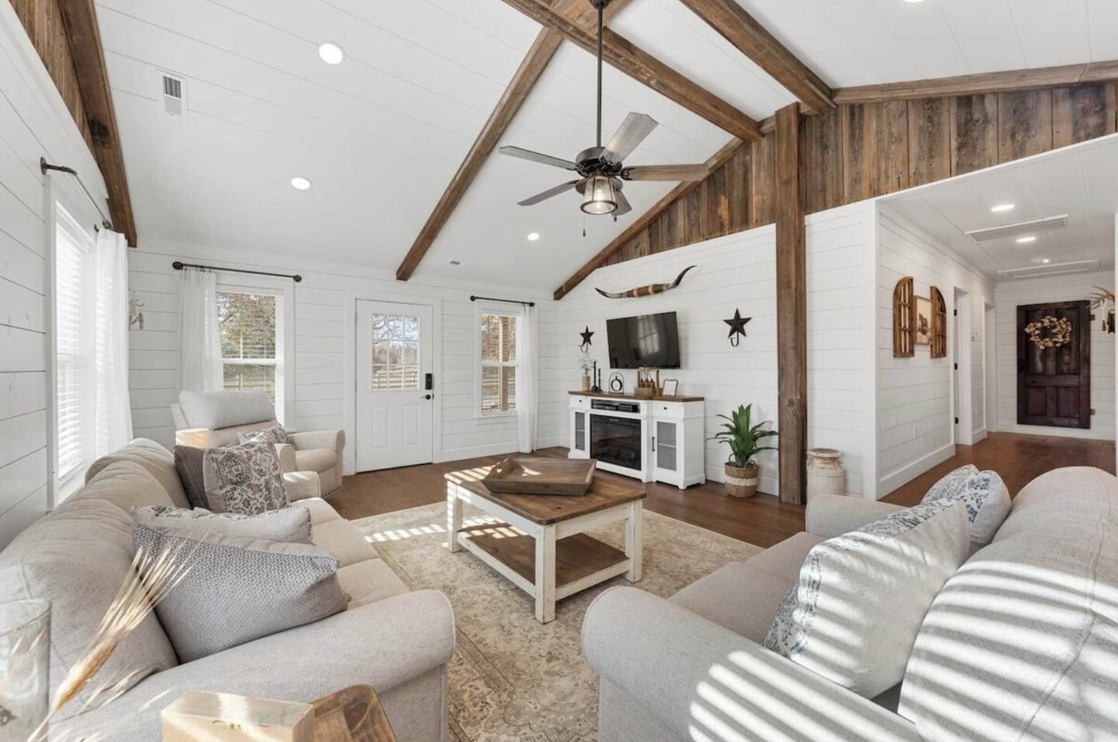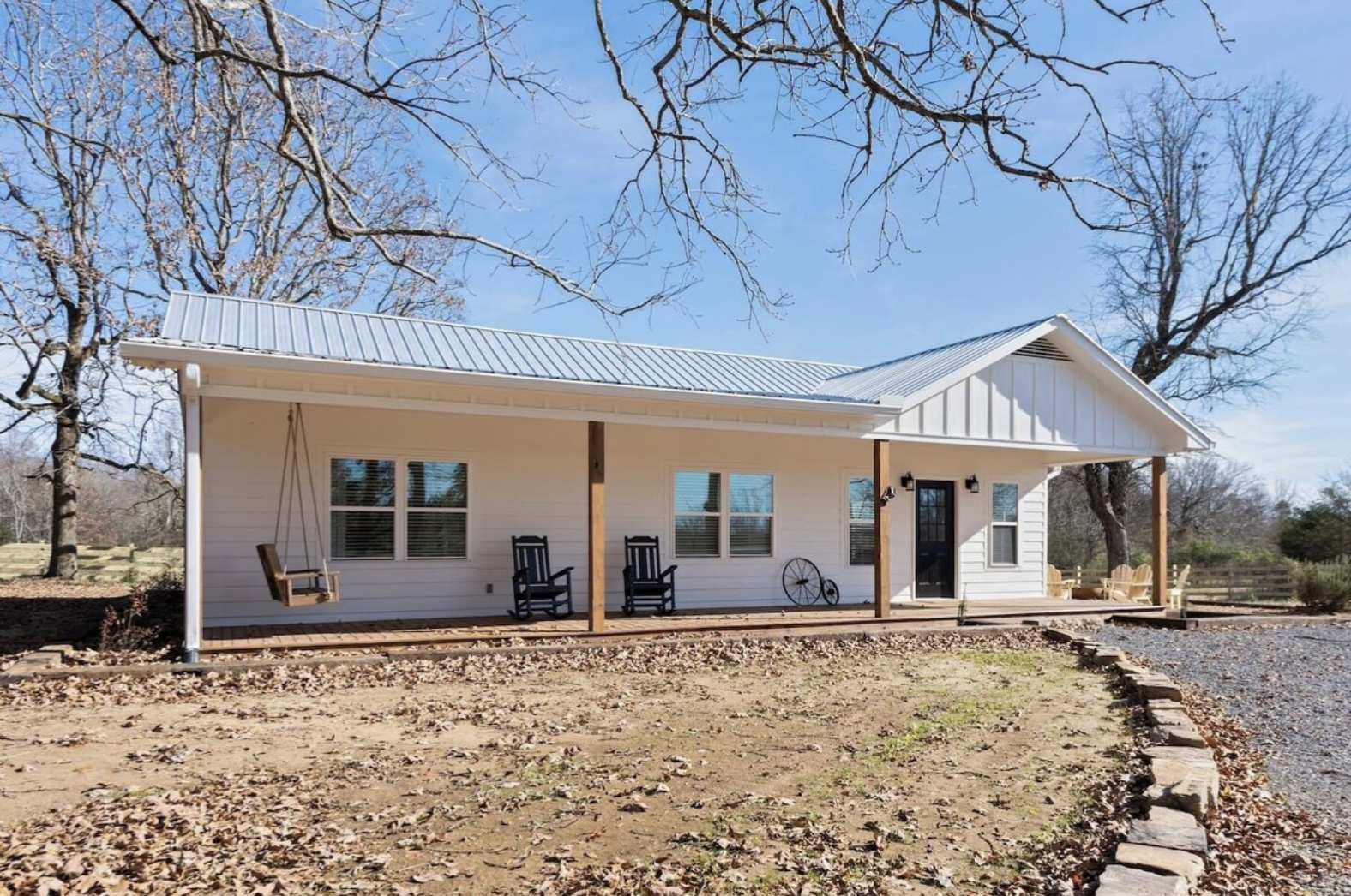 This striking farmhouse located on Mentone, Alabama, sits atop a quiet hill on 200 acres of land and perfectly strategizes the fusion of rustic charm and contemporary luxury. Just a few minutes away from the natural wonders of the Lookout Mountain region, the farmhouse offers total privacy and country living surrounded by rolling pastures, forests with mature trees, and spectacular views of the valleys.