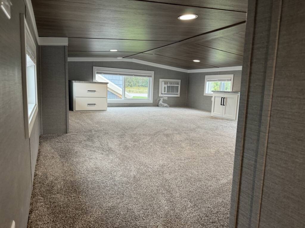 The design of the Elevation Park Model reveals a careful balance of space and functionality. Stretching 37 feet long and 12 feet wide, it offers 400 square feet of living area, with the 8-foot porch extending the experience outdoors with durable Trex decking, sturdy railings, and a supportive PVC truss. The loft adds a versatile upper level, while the main floor houses a queen bed and a sleeper sofa bed, accommodating up to six people, with additional sleeping room in the loft. Built as a complete unit for $97,950, it arrives with appliances and furniture, a fireplace for warmth, a pantry for storage, and a washer/dryer for convenience, all prepped for central heat and air with an AC unit in the loft, creating a cozy yet practical space ready for immediate use.