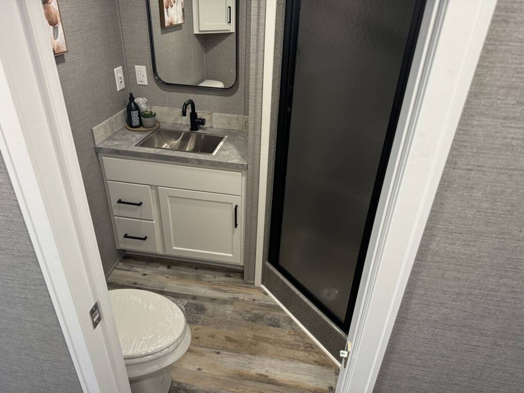 The Elevation’s practicality suits a range of lifestyles with ease. With 400 square feet, it can serve as a year-round home for a small family, the queen bed and sleeper sofa offering sleeping options, the loft providing extra space for kids or guests, and the kitchen appliances supporting daily meals. As a retreat, it becomes a peaceful escape—a couple’s getaway with the main bed, a family gathering with the sofa and loft, or a solo sanctuary with room to spread out. The washer/dryer and fireplace enhance its livability, making it a flexible base for extended stays or short visits, shaped by the needs of those who dwell within.