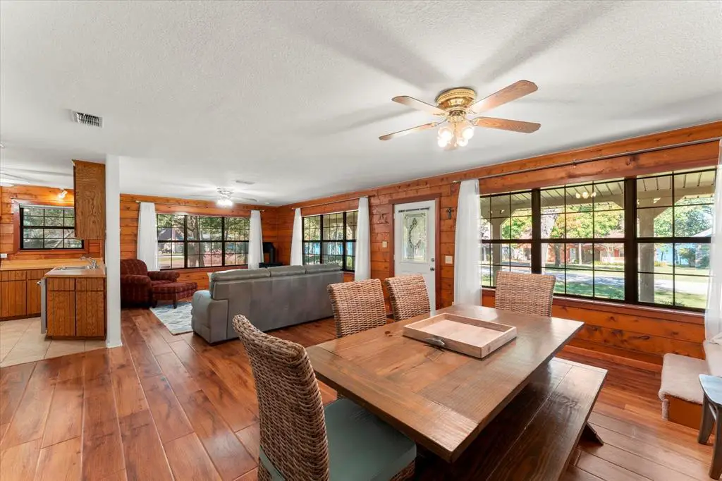 The log home located at 7893 Charlya Drive in Athens, Texas, is a stunning example of helvedged logs bringing up a warm and nature-loving 2,103 square feet rustic style home in perfect harmony. Among other amenities, the breathtaking log cabin that is by the Fairy Creek Lake, features four bedrooms, two full bathrooms, a wood-burning stove in living-room area, covered porch wide for nature enjoyment, and a calm and quite 0.41-acre lot.