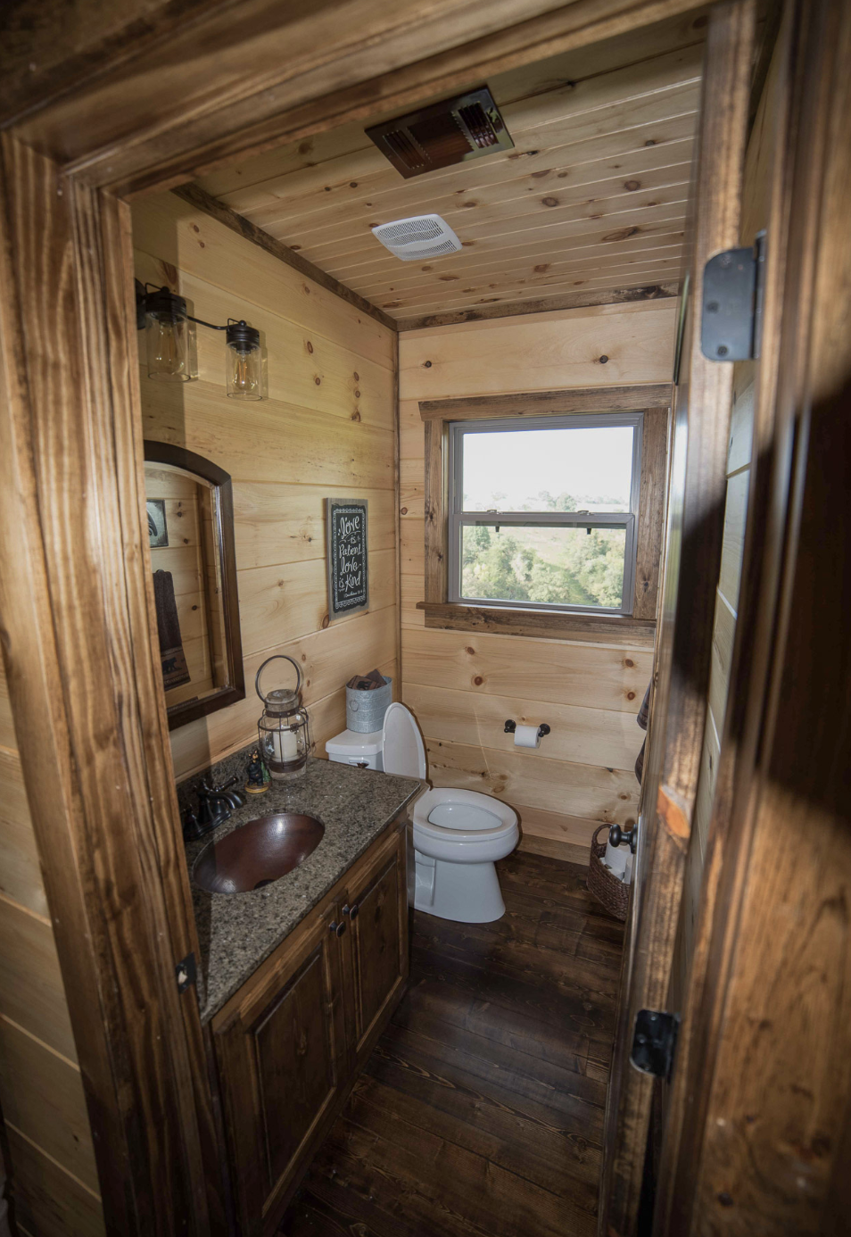 The bathrooms have simple designs that run smoothly from the cabins overall style and are practical for the fixtures. The half-bath downstairs and the full bath upstairs offer convenience, time and again, for each resident, with both aspects of functionality and aesthetic balance receiving special attention.