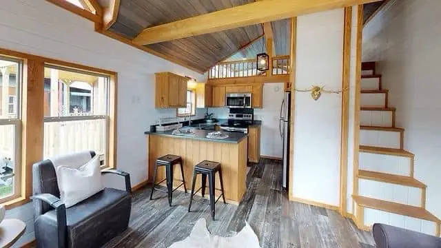 The Sunset’s versatility is what makes it shine, a park model that rolls with your life. For a couple, the 396 square feet are a cozy nest, the queen beds a restful escape, the kitchen a spot for intimate dinners, the loft a quiet nook for books. Families can turn it into a mobile adventure home, the loft for kids, the living area a gathering spot, the porch a playground. I’ve seen tiny homes that feel like a squeeze, but this one, with its optional screened-in porch or LP on-demand water heater, adapts beautifully—perfect for off-grid camping, a backyard guest house, or a hunting lodge. The beauty is in the freedom, the $30,000 price from Saint Tiny Homes a gateway to a life unburdened, its design shaped by the land and the moments it holds.