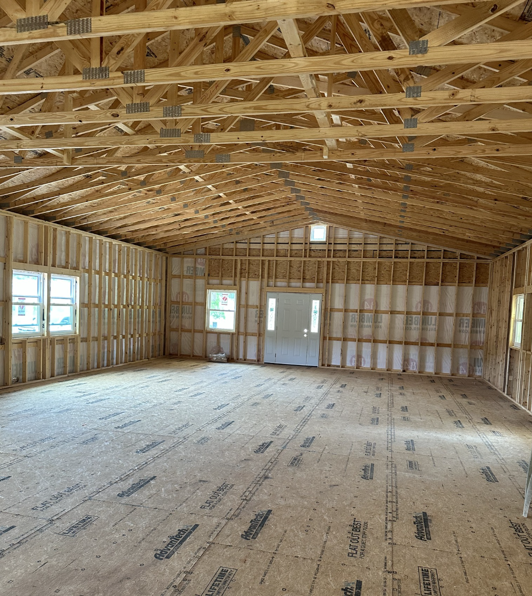 The interior of this Amish cabin is left open for creative finishing, delivered as a weather-tight shell that is a blank canvas for the owners to design as they desire. The large open area with the high 10-foot sidewalls provide a perfect basis for living rooms, multiple bedrooms, a large kitchen, or even separate areas for work and family gathering. It is not uncommon for the buyer to add after delivery insulation, division walls, flooring, electrical and plumbing systems, along with built-in furniture. Having a sizable indoor environment presents flexible planning opportunities which can cater to a family that is growing, residing in multiple generations, or having a very specific lifestyle in fact, the interior can be modified through the different stages of life.