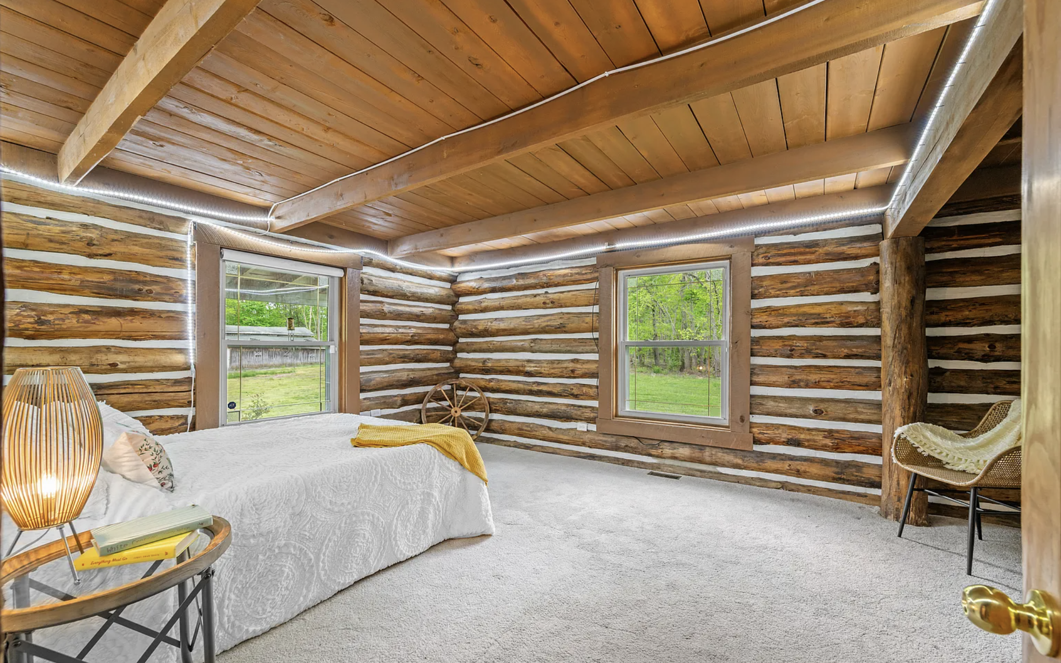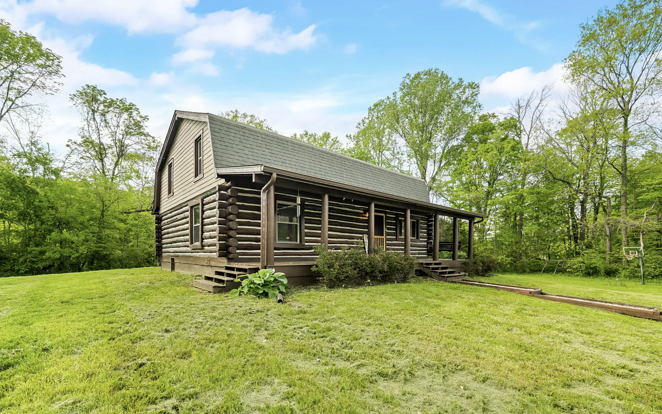 The 11.18-acre plot is a heavenly place for the owner with the forest around providing trails for walks and the open pasture giving space for gardens or animals. With its big windows and sheltered entrance, the log cabin design ensures that you are close to nature all the time, the beauty of the lot enhancing the log house charm and making a place that feels both secluded and deeply connected to the Indiana countryside.