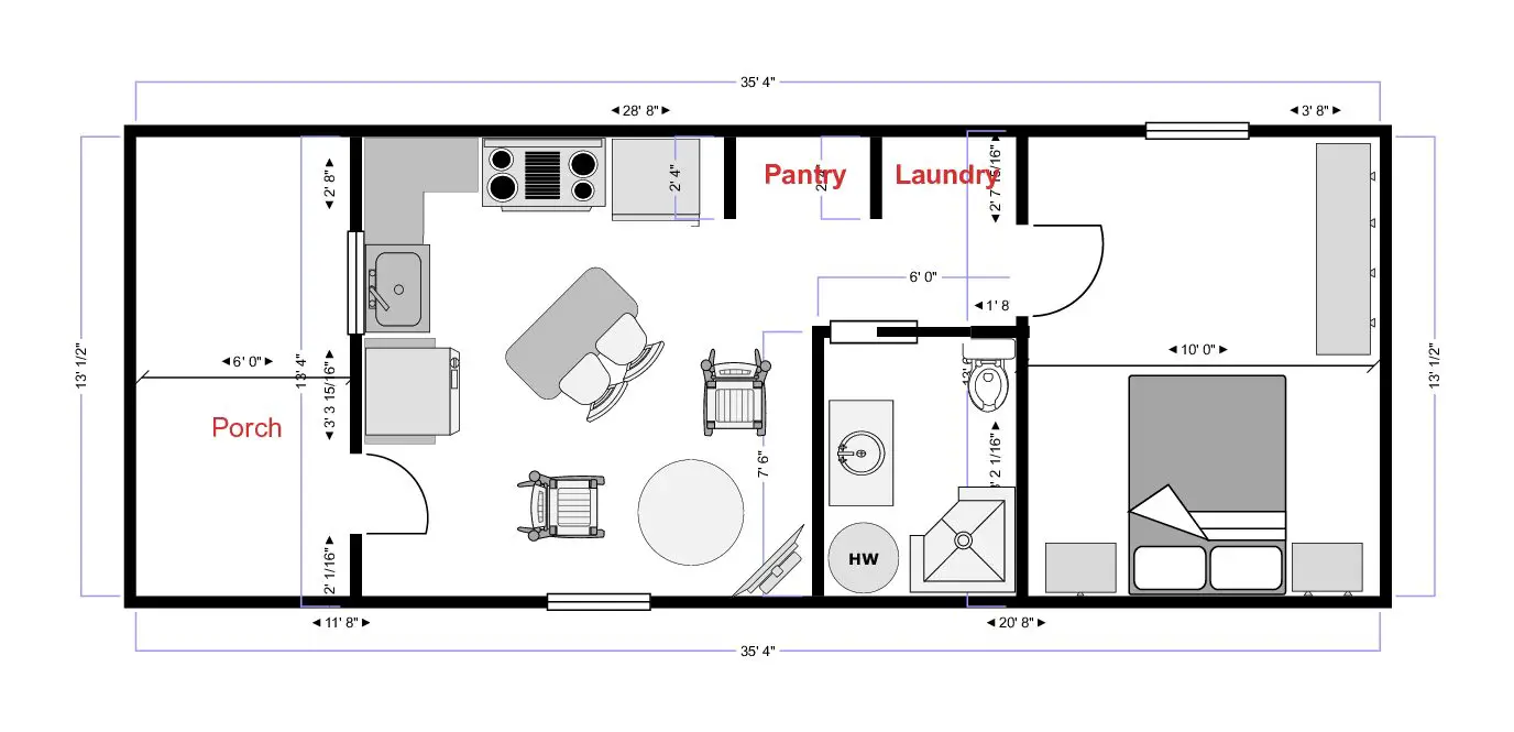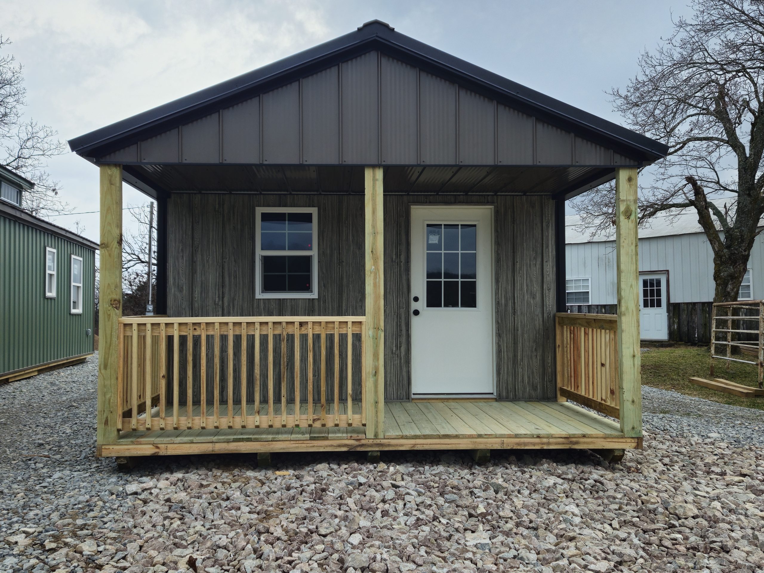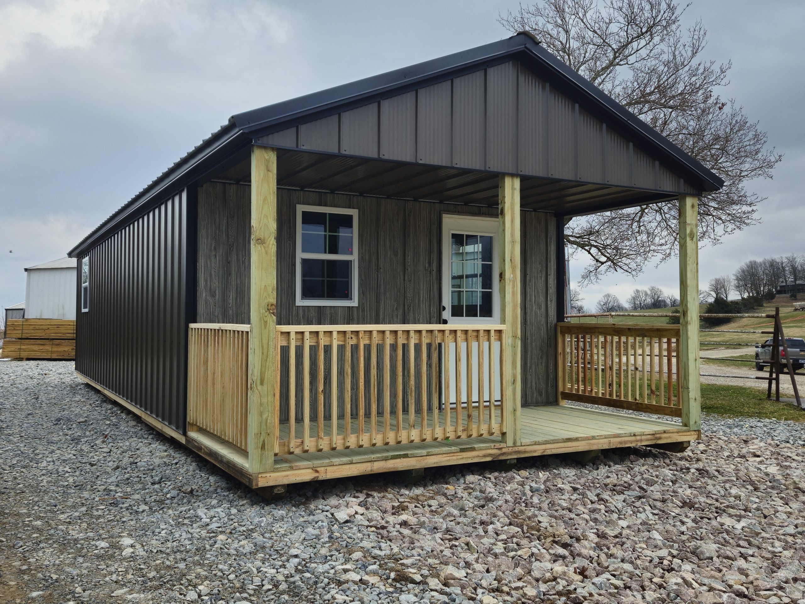 Four seasons are no match for the Sweet Escape, its design built to handle the Ozarks’ moods with ease. Spring brings the porch to life for birdwatching, the interior a dry spot for rainy days, the wave panels letting the fresh air in. Summer, the cabin stays cool with optional insulation, the porch a breeze-filled retreat for barbecues, the 14×36 footprint fitting a site with room to spare. Fall, the matte black roof contrasts the colorful leaves, the interior a cozy nest for harvest meals, the structure’s sturdiness a comfort against the chill. Winter, the build holds the heat, the porch a snow-dusted wonder, the cabin a warm heart for hot cocoa nights. This all-season reliability makes it a year-round companion, its beauty in the way it weathers the changes, a home that grows with the land.