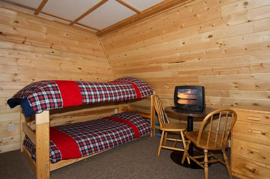 The cabin’s layout is what makes it so special, the main level kicking off with a bedroom featuring a queen bed and a shared full bathroom, keeping things convenient for everyone. Upstairs, four more bedrooms—each with a queen bed and a single over single bunk—offer plenty of room for kids or extra folks, the loft area doubling as a sixth sleeping space with two single over single bunks. The three full bathrooms spread out the comfort, ensuring no one’s waiting in line, while the open floor plan in the great room ties it all together, a huge space for hanging out, cooking, or just soaking in the views. The commercial kitchen is a standout, stocked for big meals or group feasts, the back deck and patio with a large fire pit right outside turning evenings into something magical.