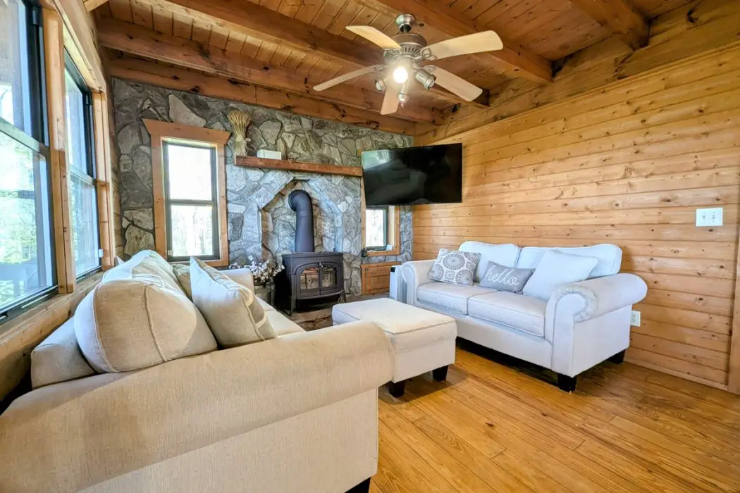 The cabin’s beauty is amplified by the 37.66 acres that surround it, the property’s gentle slopes and wooded edges creating a private world of discovery. The front porch becomes a daily ritual spot, a place to listen to the wind through the trees or watch deer graze in the meadow. The interior’s rustic elegance, with its log walls and open great room, invites a lifestyle attuned to the land, the wood stove a cozy anchor during winter, the windows a frame for spring blooms. This harmony of structure and setting turns the home into a living portrait of Patrick County’s natural splendor, a place where the mountains’ quiet majesty seeps into the soul.