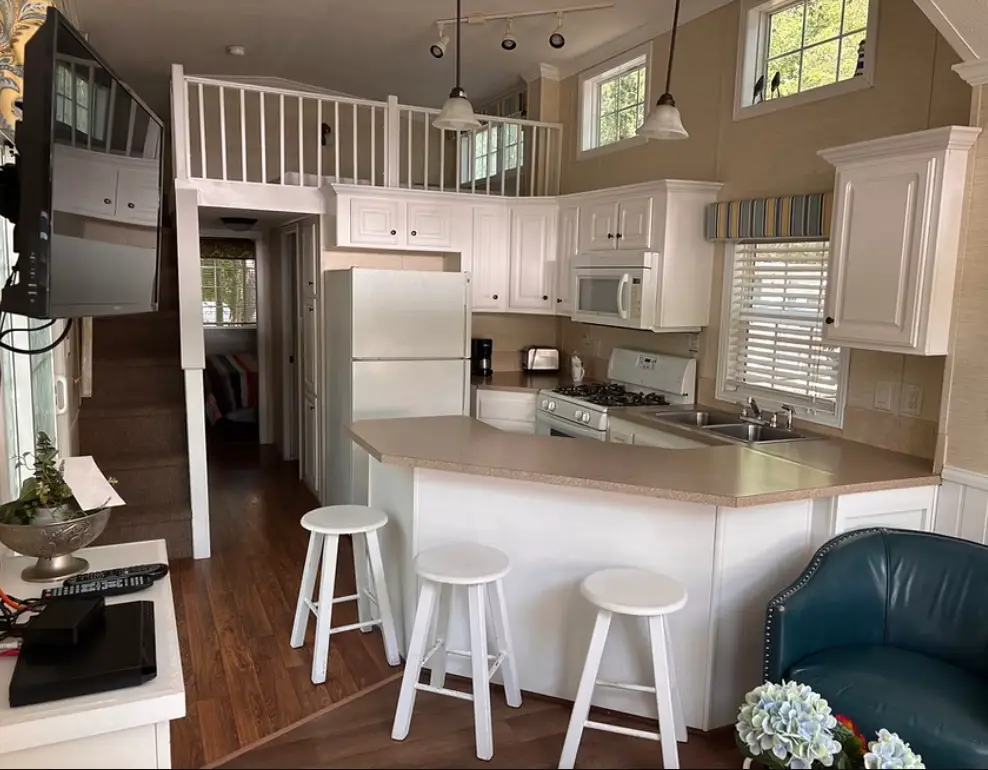 Park model cabins have a unique way of weaving the outdoors into the fabric of daily life, their modest size offering a retreat that feels both intimate and expansive. The park model at Beachcomber Camp in New Jersey stands out as a beautiful haven, its 12 by 35-foot layout designed to sleep six with a warmth that lingers. Featuring a queen bed, a sleeper sofa, and a sleeping loft, along with a full bath and kitchen, this space unfolds like a quiet promise of comfort amid the wooded sites. Having spent time exploring various getaways over the years, I find myself drawn to the way this park model blends rustic charm with practical elegance, its setting among the trees enhancing its serene appeal.