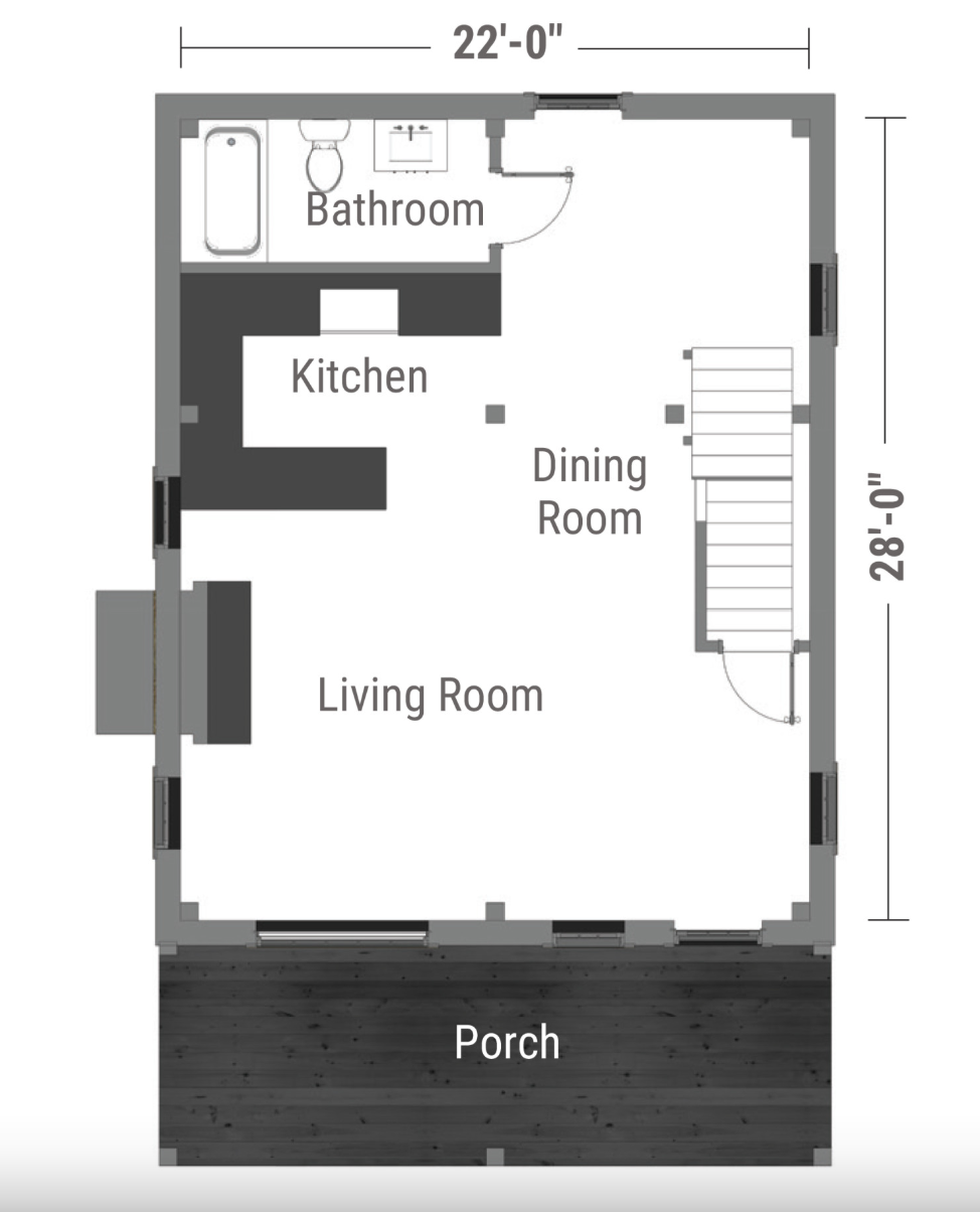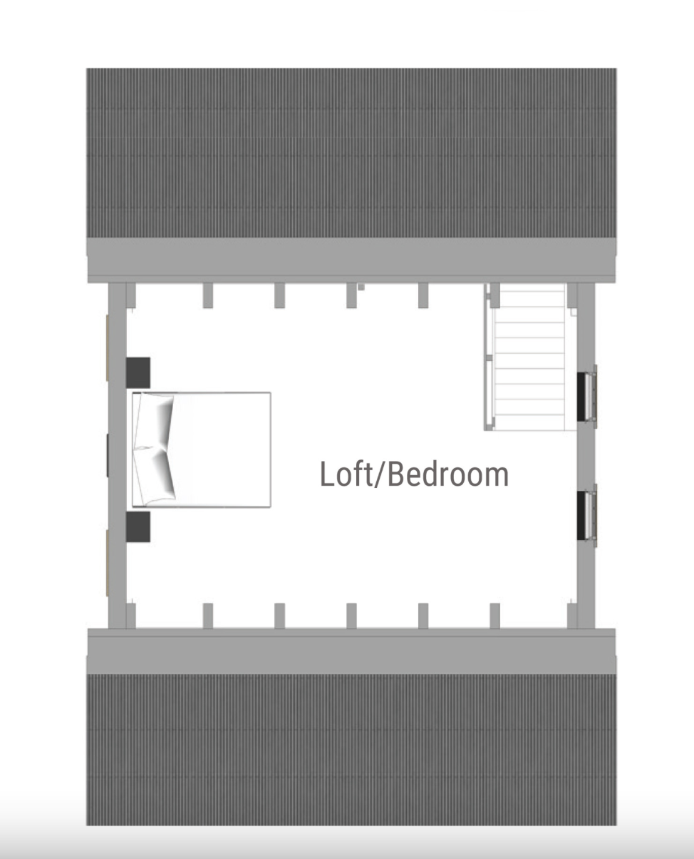 The cabin kit features a spacious second floor loft that can be used as additional sleeping or storage space. Moreover, the loft has high ceilings and windows, which keep the area bright and airy. The main level offers tall first floor ceilings, creating a roomy and inviting space. The kit includes detailed plans, such as sealed shop drawings and a foundation layout, thus the owners or contractors can easily carry out the construction.