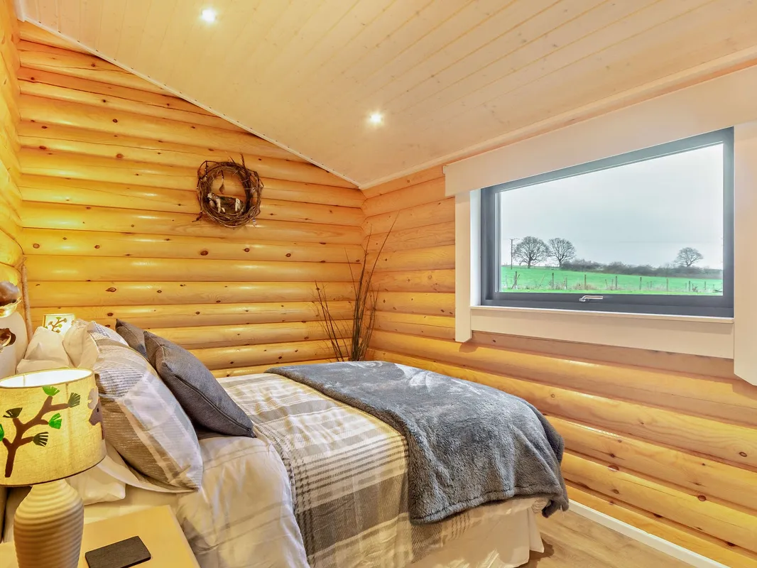 The bedrooms offer a mix of privacy and comfort, each designed with care. The master bedroom, with its king-size bed, opens into an en-suite featuring a striking bath, the tub a luxurious spot to soak away the day’s worries, the open layout adding a touch of elegance. The additional double bedroom and twin room provide cozy nests, their wood accents echoing the cabin’s rustic soul, the natural light streaming in to wake you gently. The family shower room, with its sleek shower cubicle and WC, serves as a practical yet stylish retreat, the tiles warm underfoot thanks to the underfloor heating. This arrangement suits a family needing space to spread out or friends seeking a shared escape, the thoughtful decor tying it all together with a homely feel.