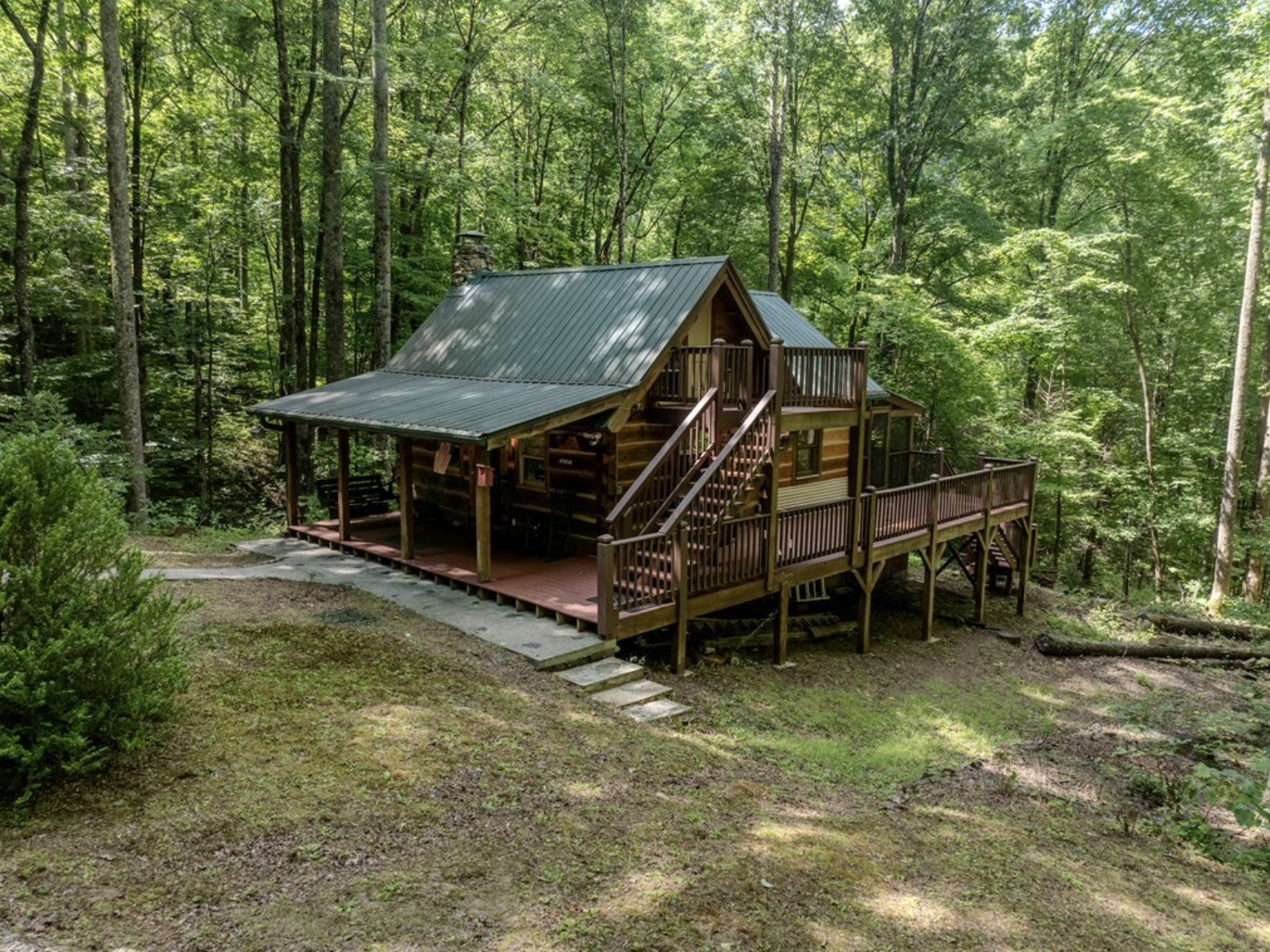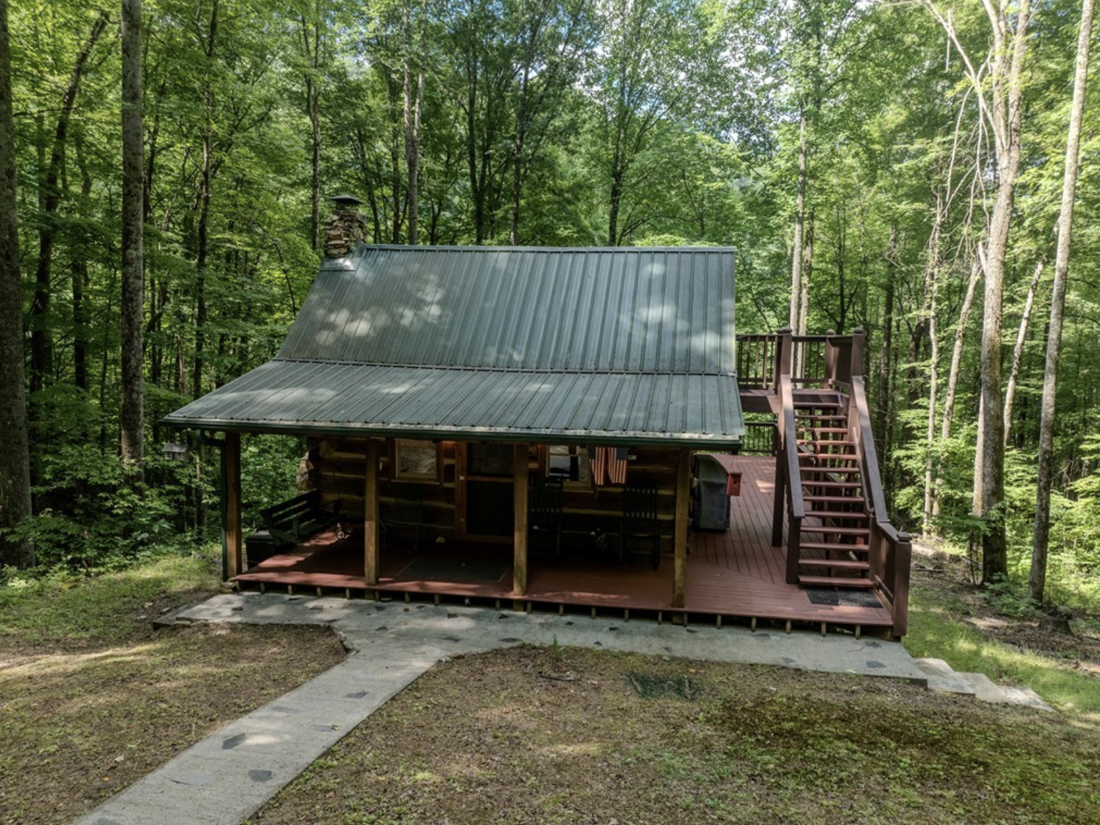 | Exterior | Covered porch, creek access |