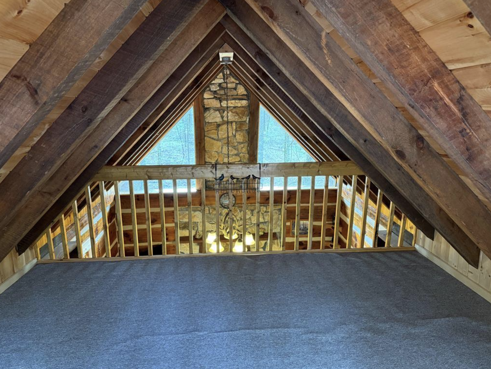 | Interior | Cathedral ceilings, wood-burning fireplace |