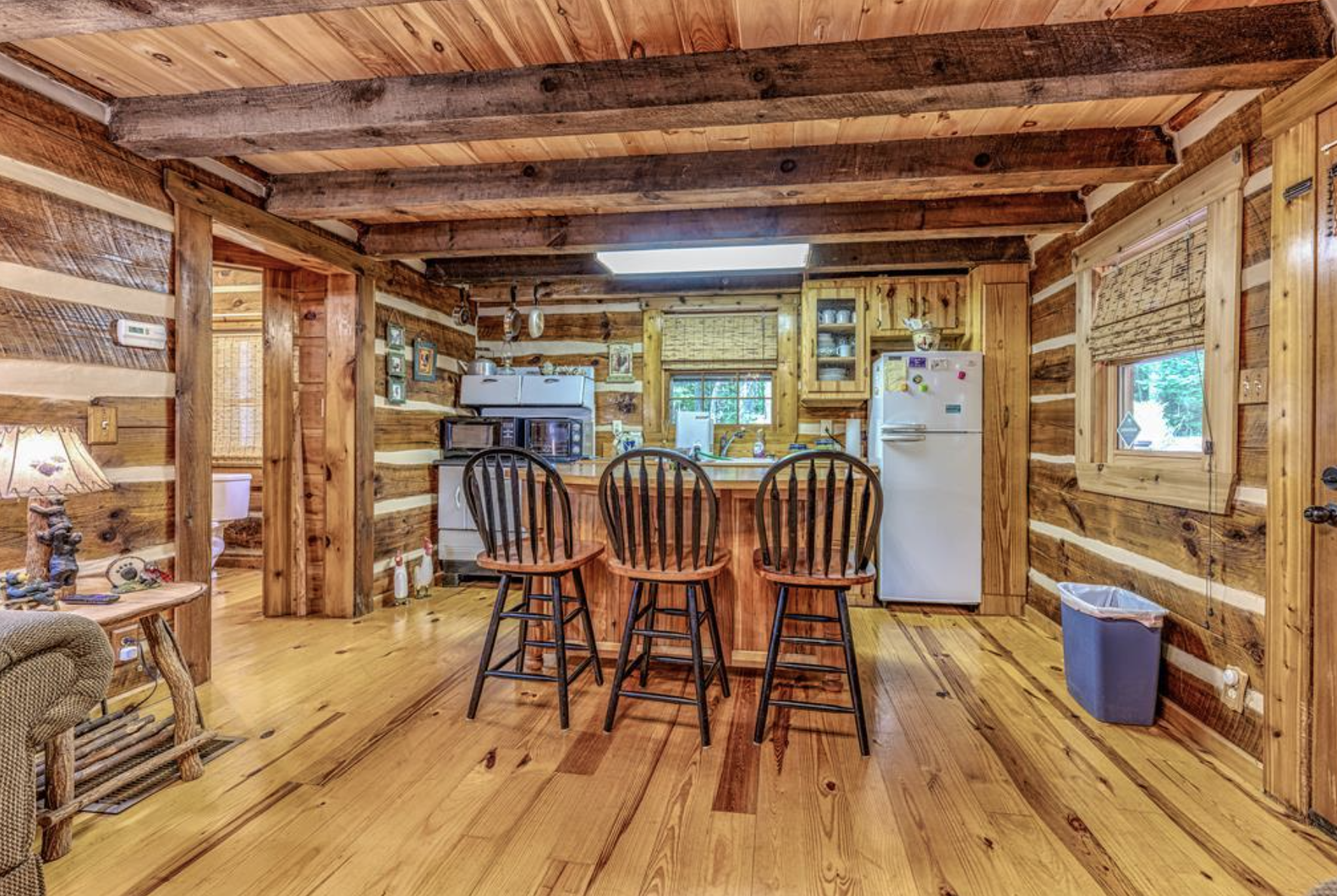 This stunning reconstructed log cabin from 1910 is on the market through Redfin, listed at $204,996. For further information and additional photos, please go to the Redfin listing: Redfin – 99 Clearview Ln, Murphy, NC.