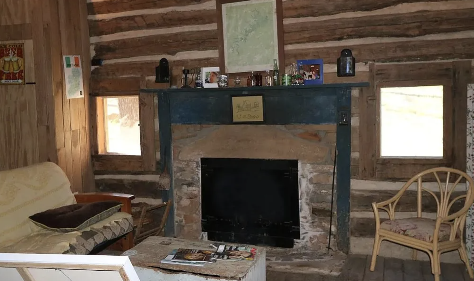 The cabin is faithful to its original historic look with its old-time log exterior. The solid hand-hewn logs, which have been preserved and restored, emit a warm and inviting glow in the sunlight, and the land and woods surrounding the cabin give the sense that the place is totally secluded.