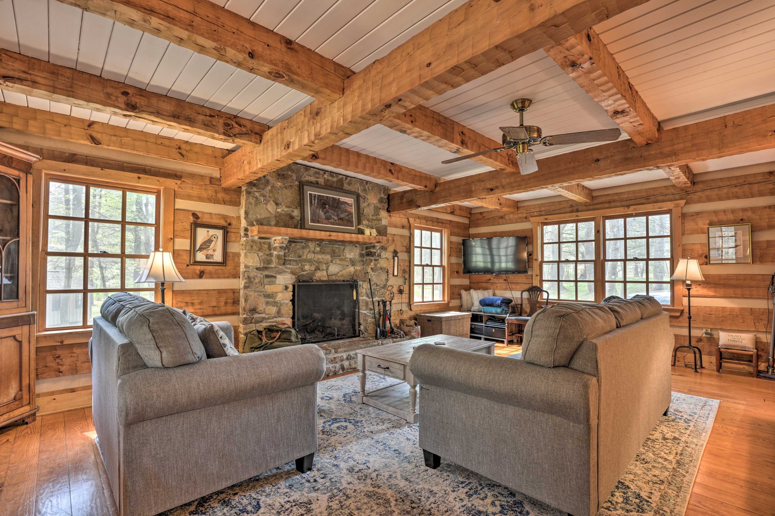 This gorgeous 12-acre log cabin is available as a vacation rental on Evolve and can be booked directly for availability, rates, and more information: