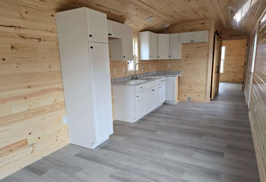 Stepping into a cabin often feels like a retreat into a simpler time, where the natural world takes precedence and personal touches shape the space. The 10x40x7 Outfitter Cozy Cabin, crafted by Crossroad Cabins, offers this experience with its generous 400-square-foot layout, priced at $52,500. Located in Owingsville, this move-in-ready home features a kitchen with cabinets, luxury vinyl plank flooring, shiplap walls and ceilings, HVAC, an on-demand water heater, and 220-amp electrical service. The exterior boasts a charcoal metal roof, grey trim, and camel-colored log siding, creating a warm yet striking presence. While the kitchen provides a solid starting point, the rest of the interior awaits the buyer’s vision, making it a canvas for customization. Nestled in a setting that could range from rolling hills to wooded retreats, this cabin stands as a testament to versatile living, ready to adapt to the changing seasons and the needs of those who call it home.