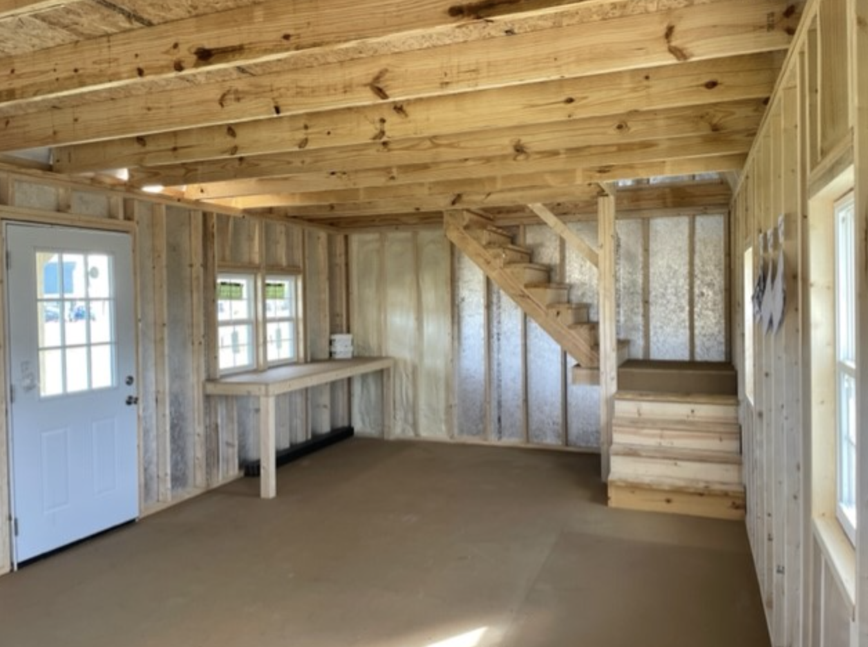The outside is covered with incredibly easy-to-care-for 50-year LP SmartSiding along with a 40-year metal roof including an R7 vapor barrier, so you can expect your cabin to be well protected and hardly need any work for years. First-floor sidewalls are 94 inches high, and the upstairs has 7 feet and 5 inches from the floor to the truss peak, making the second story a pleasantly large and open space. Besides those, there are also 12-inch gable overhangs and eight insulated 24″x36″ windows for excellent lighting. In addition, you get a 36″x80″ 9-lite prehung door, and a porch 6 feet long is one of the options.