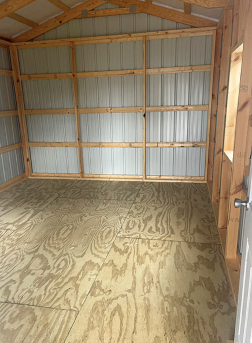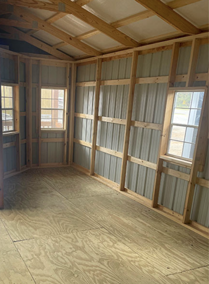 This cabin model is available on Mountain View Barns. For further details and information about different sizes, upgrades, and prices, check the listing:Mountain View Barns – Deluxe Cabin
