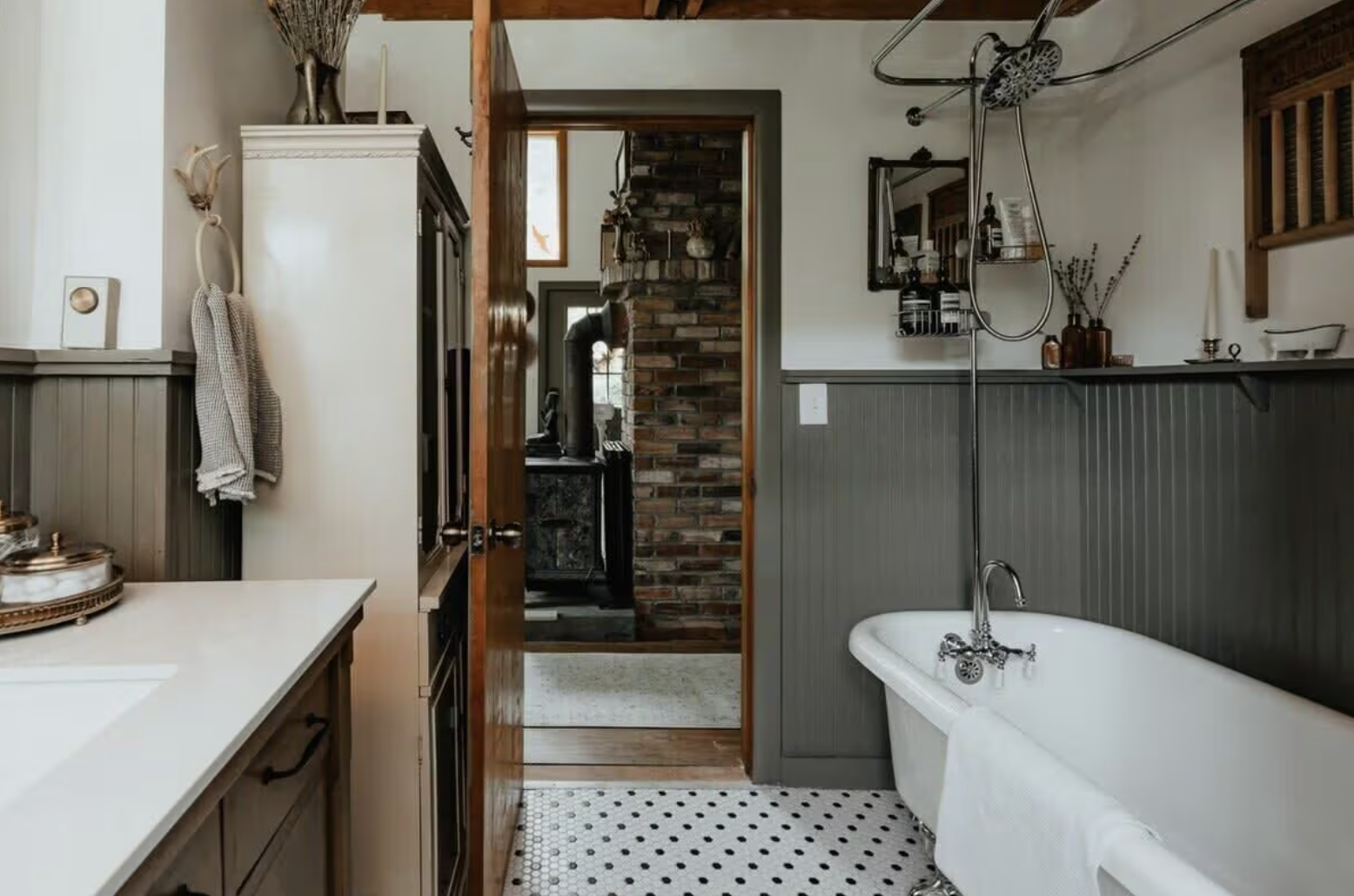 The full bathrooms have been modernized for comfort, clean with good water pressure that makes one’s morning refreshing and efficient. Spaces are quite well thought out and the cabin guests can be served with modern touches that are natural and blend with the rustic surroundings which may be imagined as extensions of the backwoods and river itself.