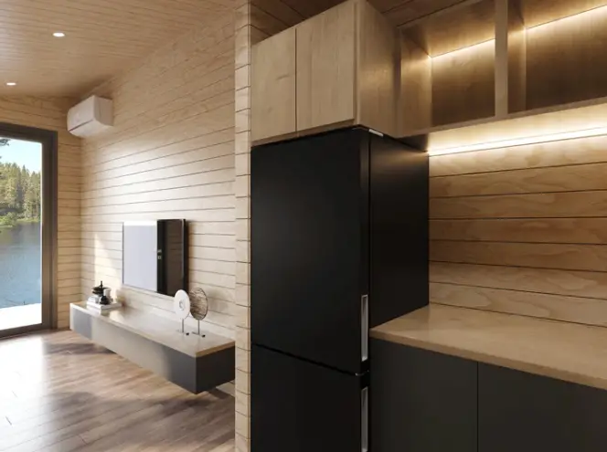 The construction supports a year-round presence, a quiet strength that enhances its appeal. The modular build, with its sturdy frame and insulated walls, handles winter chills and summer heat, the mini-split system—likely included—ensuring comfort. The metal roof sheds snow and rain with ease, while the board and batten siding weathers gracefully, adding character over time. The 24’9″ x 42’3″ footprint fits diverse settings, from forested retreats to open fields, the units’ separation allowing for soundproofing or shared utilities. This resilience allows for diverse activities—cooking in one kitchen during a winter storm, relaxing in the other during summer light, or reading across the duplex in fall—adapting to the seasonal flow, though the buyer might add furnishings to enhance the experience.