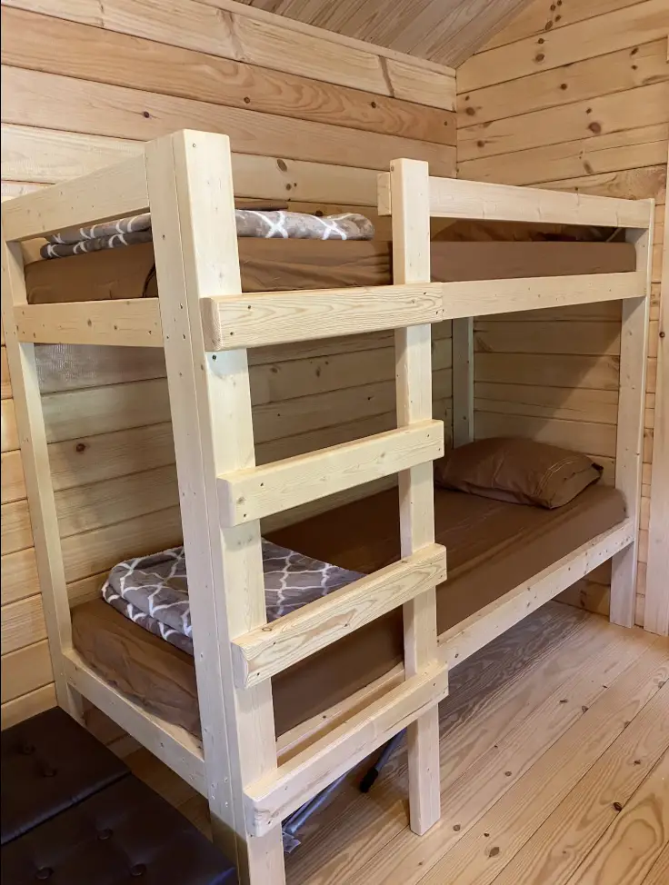 There are various flexible accommodation options for your group to choose from when additional sleeping arrangements is requirement, with the beds being as comfy as the rest of the cabin features. Meanwhile, the full bathroom received some comfort upgrades, hence the clean fixtures and good water pressure have made it easy for you to get refreshed and ready for the day. The space, while small, is well-thought-out to accommodate the needs of the guests and therefore, the modern features that blend in with the rustic environment smoothly is a plus.