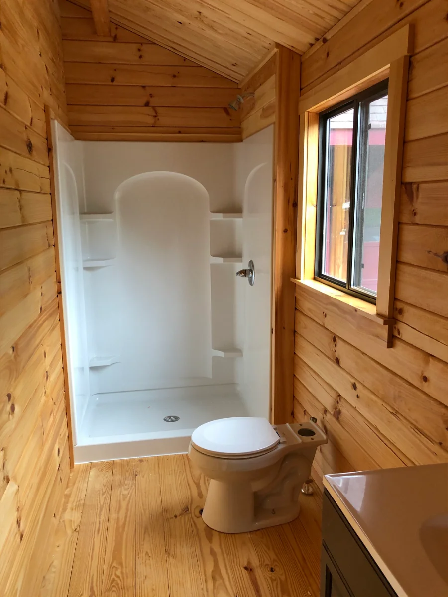 How about finishing the walls in bright pine tongue-and-groove for that warm classic cabin look or choosing the modern way with shiplap and matte black fixtures? Mount a small wood stove for chilly winters, put a mini-split for comfortable cooling or heating at any time, and build a lovely window seat that faces whichever great view you happen to be parked at. As the tiny home comes to you ready for your personal touch–electrical roughed in, plumbing stubbed, insulation options available–you are the one who decides the style and the budget.