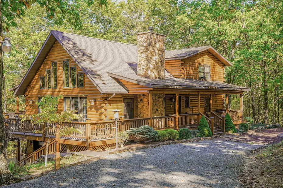 The log cabin at 2550 Alarka Rd in Bryson City, North Carolina, is a wonderful… 1,988 Sq. Ft. Log Cabin Showcasing Timeless Luxury and Style