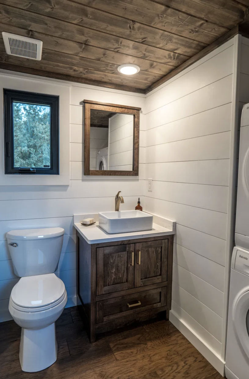Besides its location adaptability, it is also one of the things that make the house even more appealing. Because of the size of 399 sq ft, house can be placed even in smaller lots or rural properties, as well as in the park model communities where larger homes are not allowed. With its rustic yet elegant look, the house will be a good addition to the natural environment while at the same time, it will look very beautiful and advanced in the commercialized area. Many people love this tiny house as it can be used as a primary residence, a weekend getaway, or a rental property with an income, and all three are correct ways to use it.