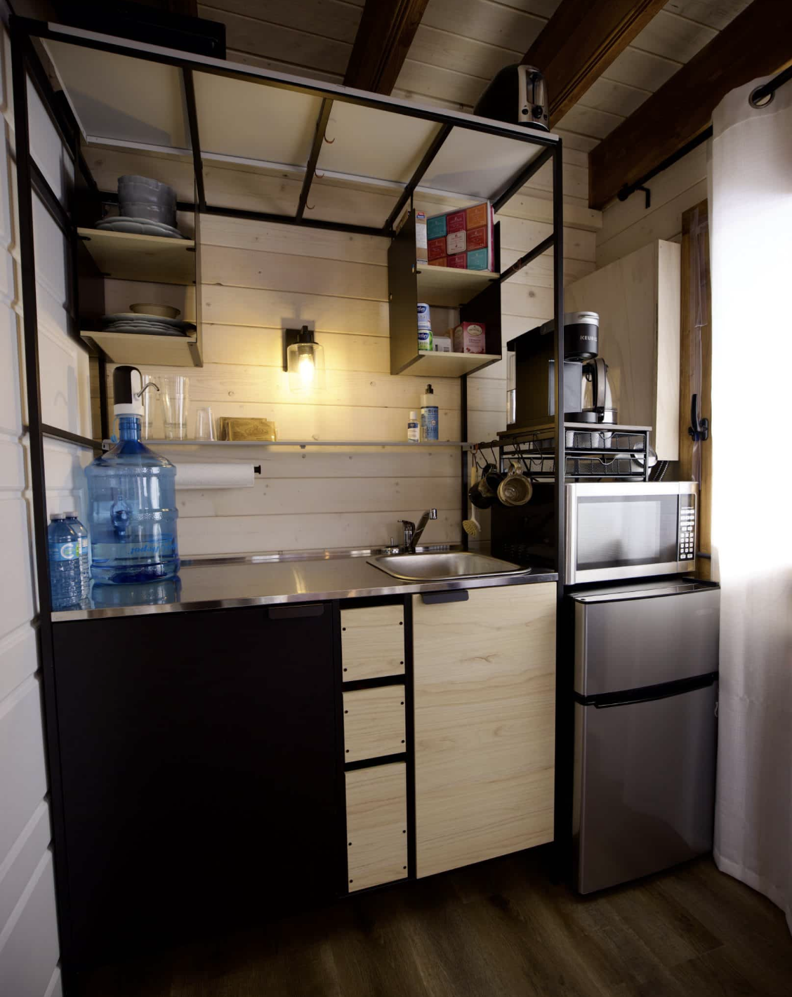 Bunkie cabins have gained popularity as small, well-constructed buildings that can fulfill a wide range of purposes. Bunkie Life’s Sprucewood Lodge is a beautiful bunkie cabin combining traditional skill with practical elements. Taxed at $21, 995, it is a 15’ 2 3/4” W x 10’ 2 3/4” D model, with enough space for 156-184 square feet including a loft. It is highly functional and at the same time, charming small cabin.
