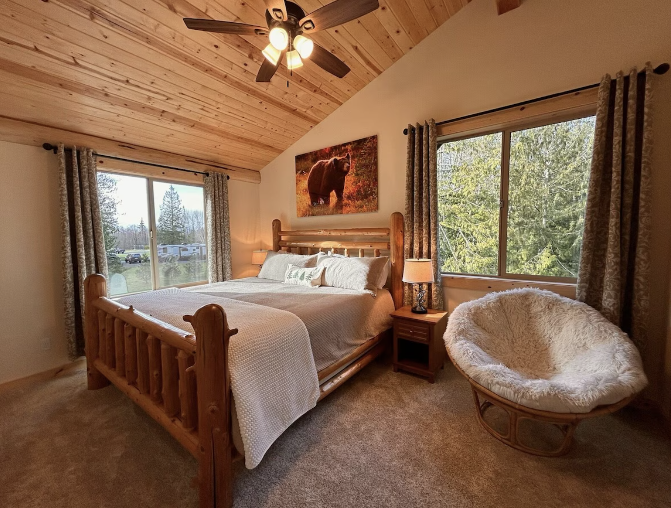 Located right in the heart of Mount Vernon, this stylish log cabin can be your luxurious home away from home in the beautiful Pacific Northwest. Listed on VRBO as a vacation rental, the property is available for direct booking with information on availability, pricing, and more:VRBO – Peaceful Pines Log Cabin