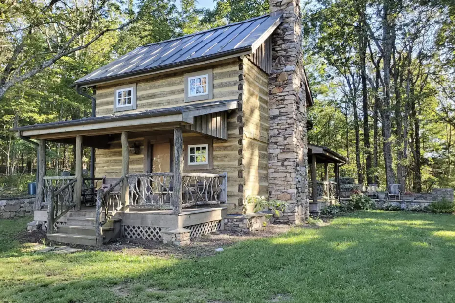 Perched on a private 450-acre farm in the heart of the Blue Ridge Mountains, this… Inside This 2-Bedroom Rustic Cabin on a 450-Acre Farm