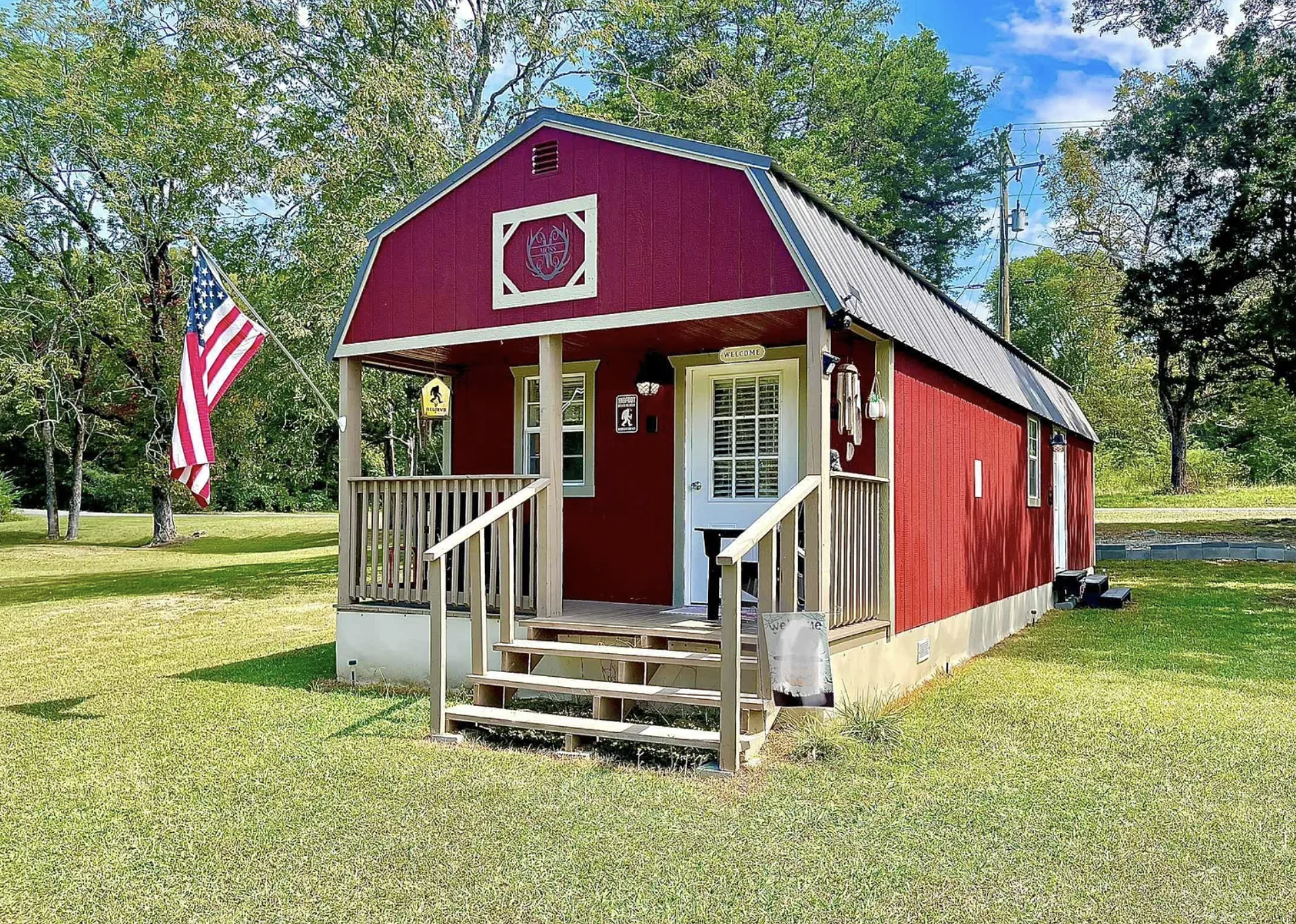 This pristine tiny cabin of 560 square feet, built in 2023, is located on almost an acre of land that slopes down to the clear waters of Weiss Lake – a lake known throughout the South-East as the “Crappie Capital of the World”. This cabin is all about turnkey perfection right from the moment you drive down the quiet street and see the bright white exterior and metal roof shining in the sun.